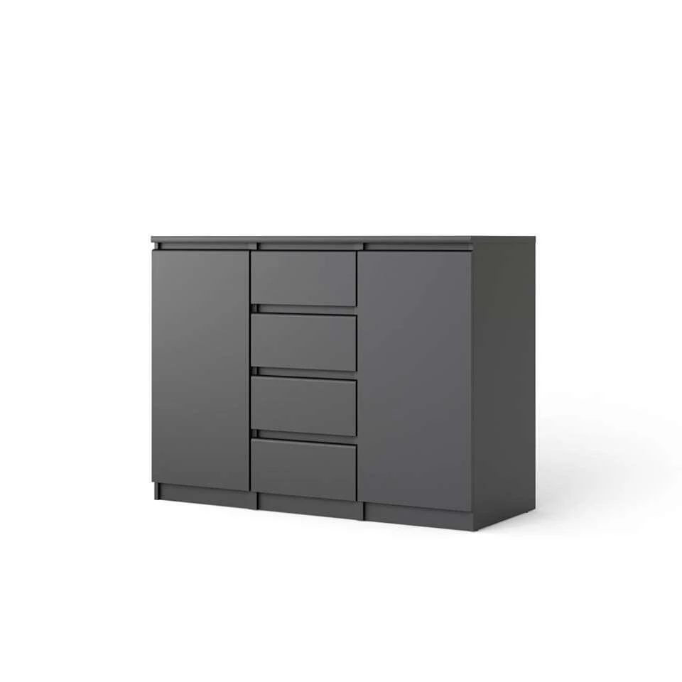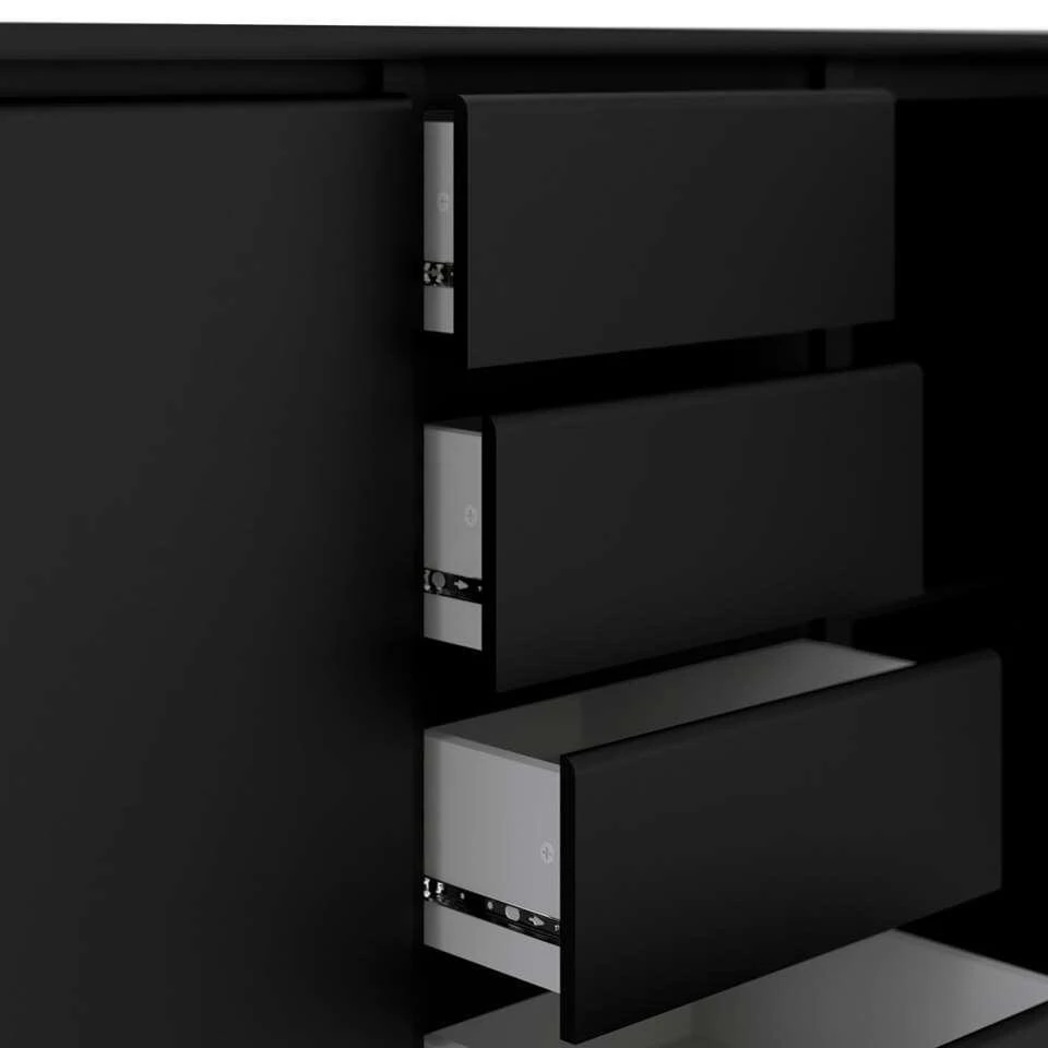 Kast Naia is een moderne kast voor in de woonkamer, maar ook in de slaapkamer staat deze kast mooi. De Naia heeft een strakke vormgeving en is mat zwart van kleur. Deze ruime en praktische kast staat goed in elk modern interieur. Berg alles netjes op in kast Naia. Dit praktische en stijlvolle meubel is gemaakt van spaanplaat.