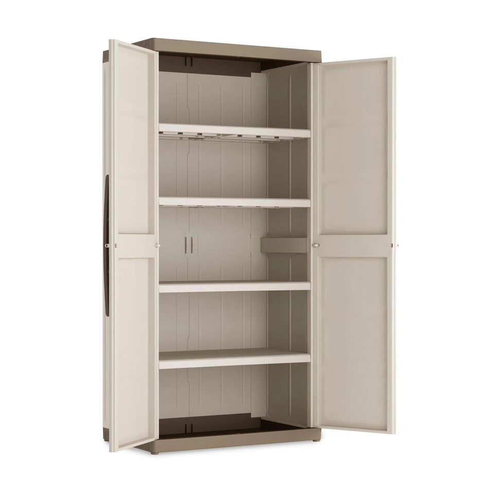 Keter Excellence XL is een extra grote kunststof opbergkast voor binnen. De kast heeft 4 verstelbare legborden die ieder 25 kg draagkracht hebben. Hierdoor kun je ook zwaardere objecten netjes opbergen in de kast. Het aantrekkelijke ontwerp en de ergonomische handgrepen zorgen ervoor dat de kast past in iedere kamer.