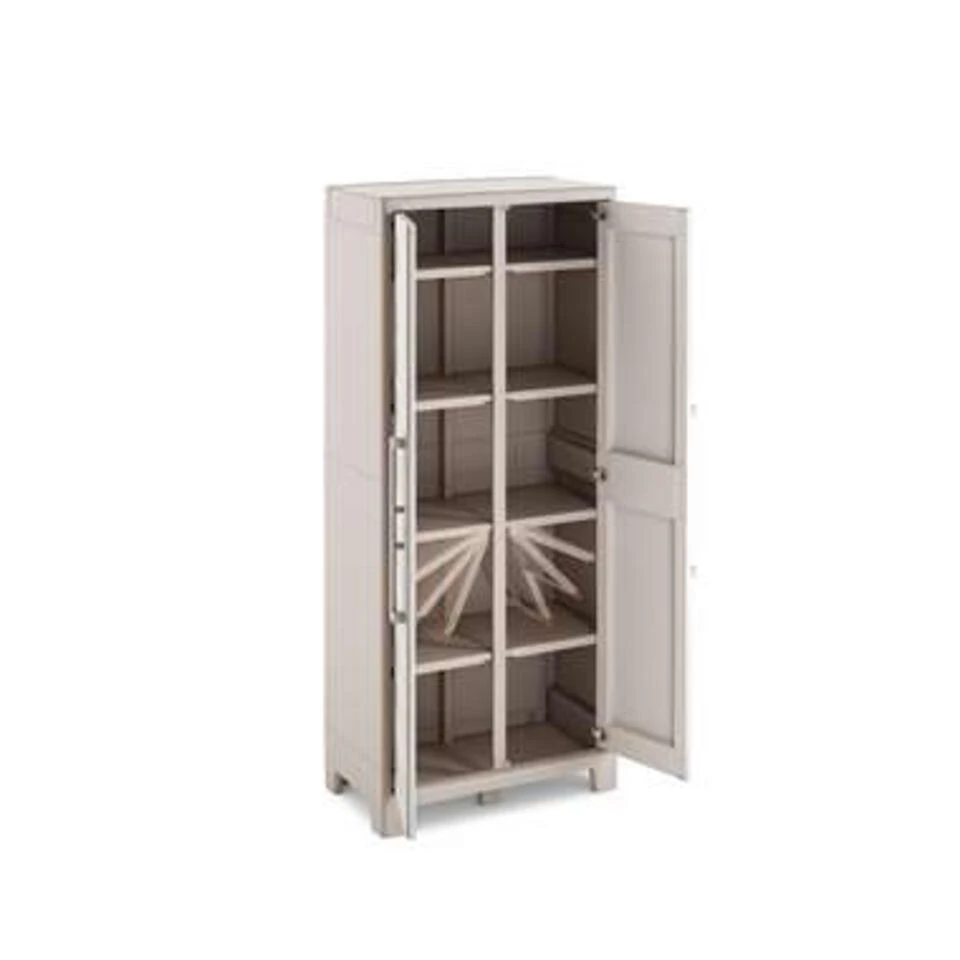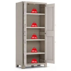 De Gulliver multispace kast is dè kast die ruimtes met z’n innovatieve kleuren en design inricht. De kast is echt omvangrijk, stevig en volledig spatwaterdicht. Het is de ideale kast voor binnengebruik en gebruik op een terras. De kast is in te delen in een horizontaal en verticaal deel. Hierdoor kunt u makkelijk uw bezems, harken en ander groot materiaal kwijt.