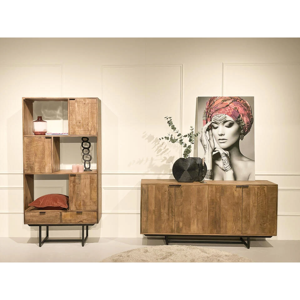 De Valdez dressoir is een zeer stoer en tegelijk strak model. Het mangohout heeft een unieke structuur waardoor de kast tot leven komt. Het stoere zwarte onderstel maakt de kast robuust. Dit is een meubel dat onmiddellijk opvalt door zijn opbouw. Het is ideaal voor moderne, landelijke en industriële interieurs. Combineer het met je andere meubels in hout en metaal.