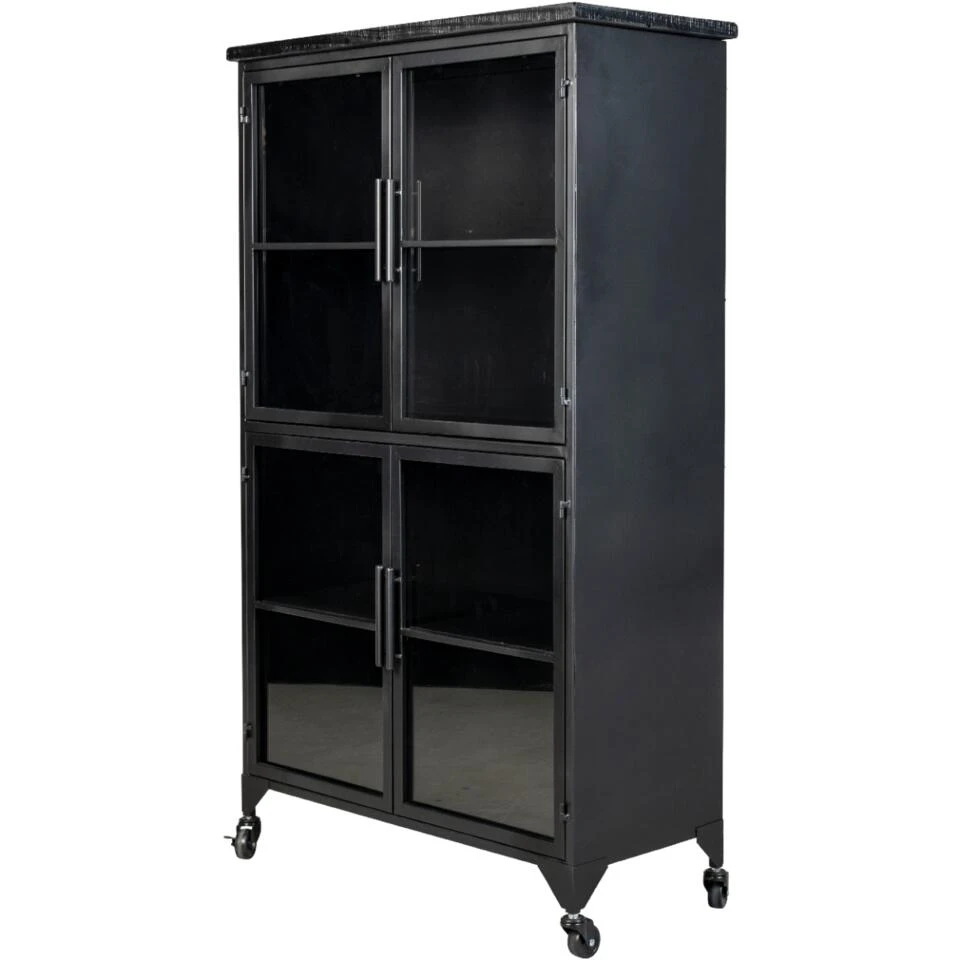 Kast Skåre van het woonmerk Puur is een stoer ontwerp met een afmeting van B76xD35xH133 cm. De combinatie van het metaal, wat is afgewerkt met zwartkleurige poedercoat, met het hout van de bovenzijde geeft een gave industriële draai aan ieder interieur. Dit ontwerp biedt twee hoge deurtjes met glazen panelen, waarachter items netjes en sfeervol kunnen worden opgeborgen. De diepte van de kast telt 35 centimeter, waardoor er binnenin lekker veel ruimte is. Daarnaast bevindt zich onder de deuren een lade, waarin nog meer spullen kunnen worden bewaard. Dankzij de wieltjes kan kast Skåre gemakkelijk een ander plekje in huis worden gegeven. Wissel bijvoorbeeld eens af met de woonkamer en eetruimte! Voor een mooi geheel kan worden gecombineerd met de andere Skåre-items. Maximaal draaggewicht: 25 kg.