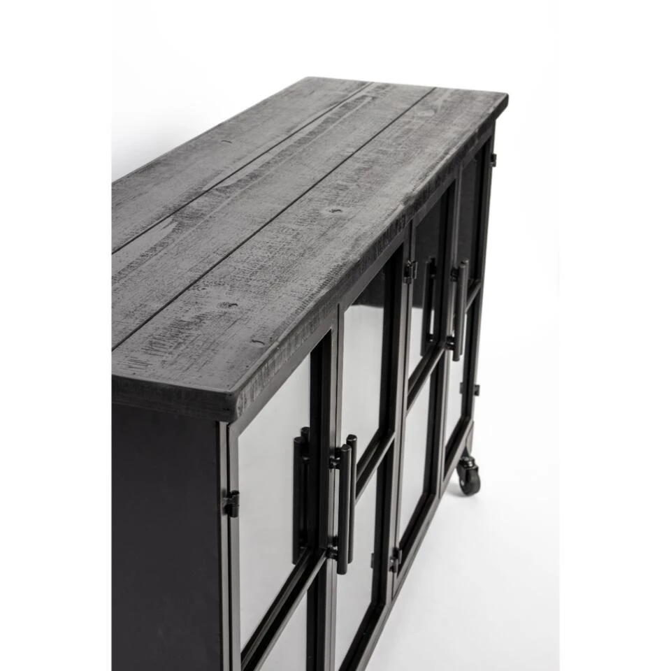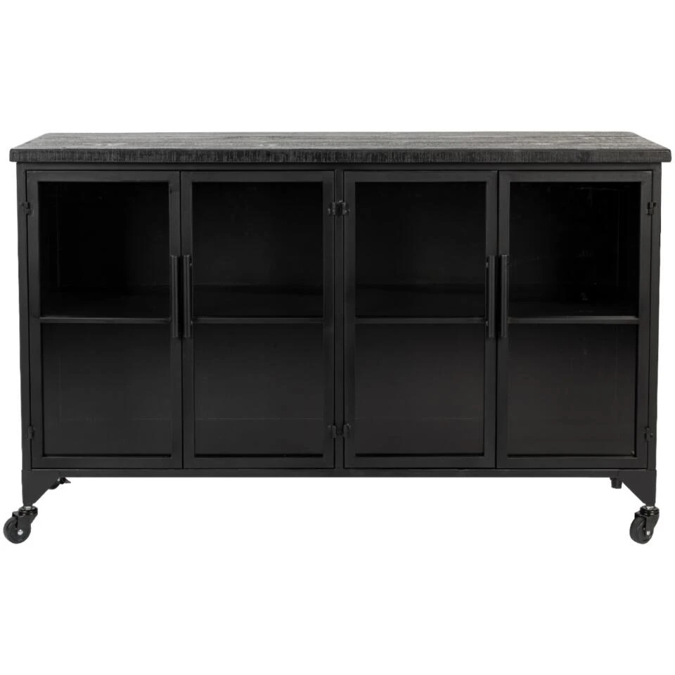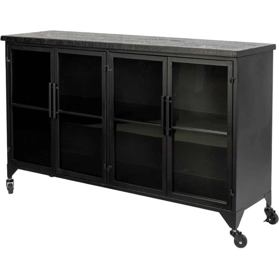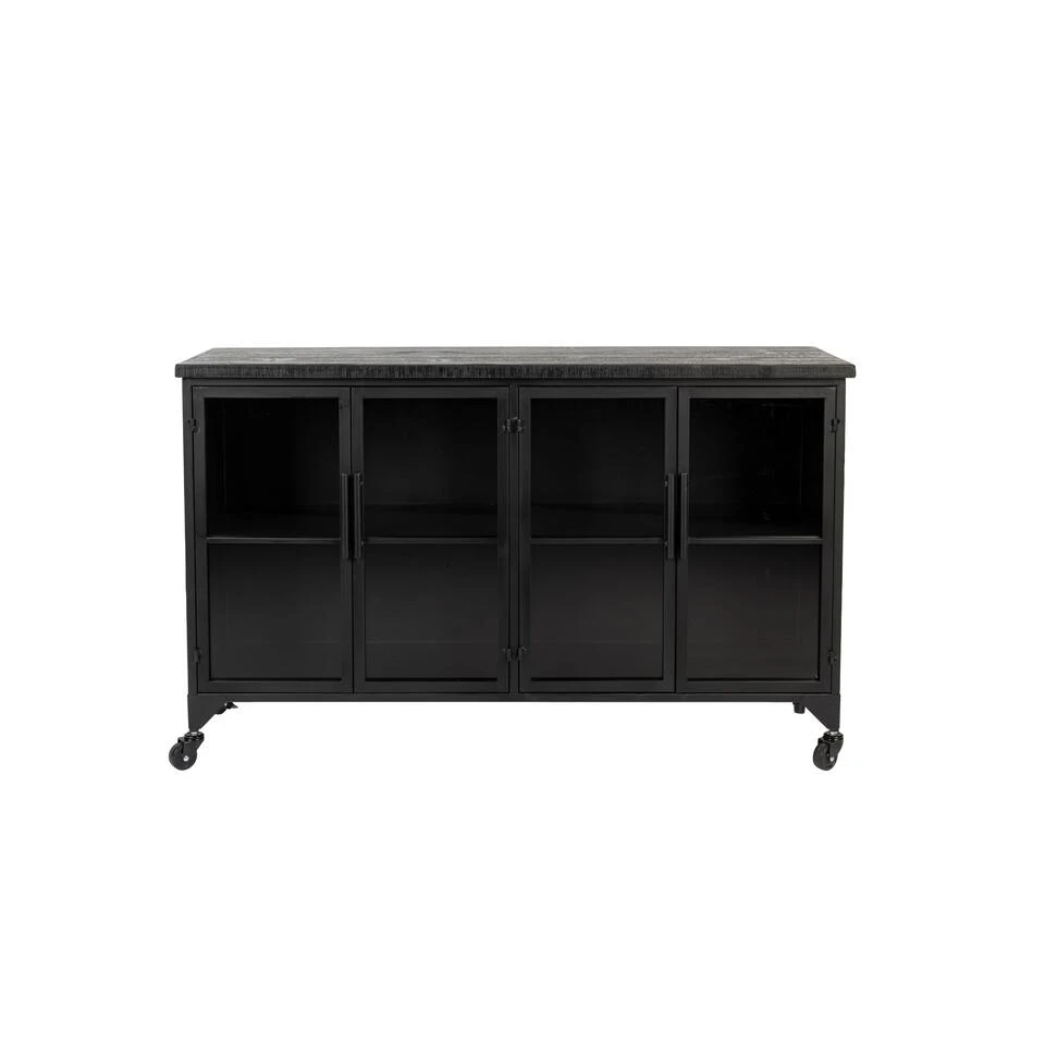 Kast Skåre van het woonmerk Puur is een stoer ontwerp met een afmeting van B120xD35xH75 cm. De combinatie van het metaal, wat is afgewerkt met zwartkleurige poedercoat, met het hout van de bovenzijde geeft een gave industriële draai aan ieder interieur. Dit ontwerp biedt vier deurtjes met glazen panelen, waarachter items netjes en sfeervol kunnen worden opgeborgen. De diepte van de kast telt 35 centimeter, waardoor er binnenin lekker veel ruimte is. Dankzij de wieltjes kan kast Skåre gemakkelijk een ander plekje in huis worden gegeven. Wissel bijvoorbeeld eens af met de woonkamer en eetruimte! Voor een mooi geheel kan worden gecombineerd met de andere Skåre-items. Maximaal draaggewicht: 25 kg.