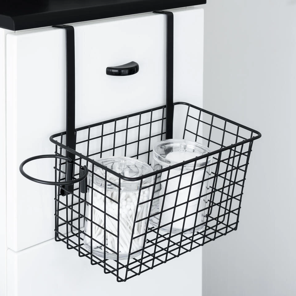 Organiseer je badkamer en maximaliseer je opslag met dit QUVIO badkamerrekje. Het heeft een handig bakje dan onder meer kan dienen als een zeephouder of als scheermeshouder. Daarnaast hang je het rekje dankzij de twee haken handig op aan je deur of een glazen scherm. Door de openingen kun je flessen ondersteboven te houden voor gemakkelijke uitgifte. Daarnaast kun je scherpe scheermessen na elk gebruik makkelijker laten drogen en het rek van draadstaal kan overtollig water weglopen en kan lucht circuleren, waardoor ieder stuk zeep ook nog eens eenvoudiger droogt.