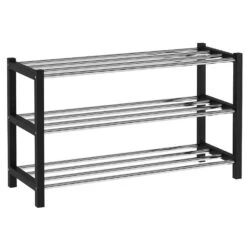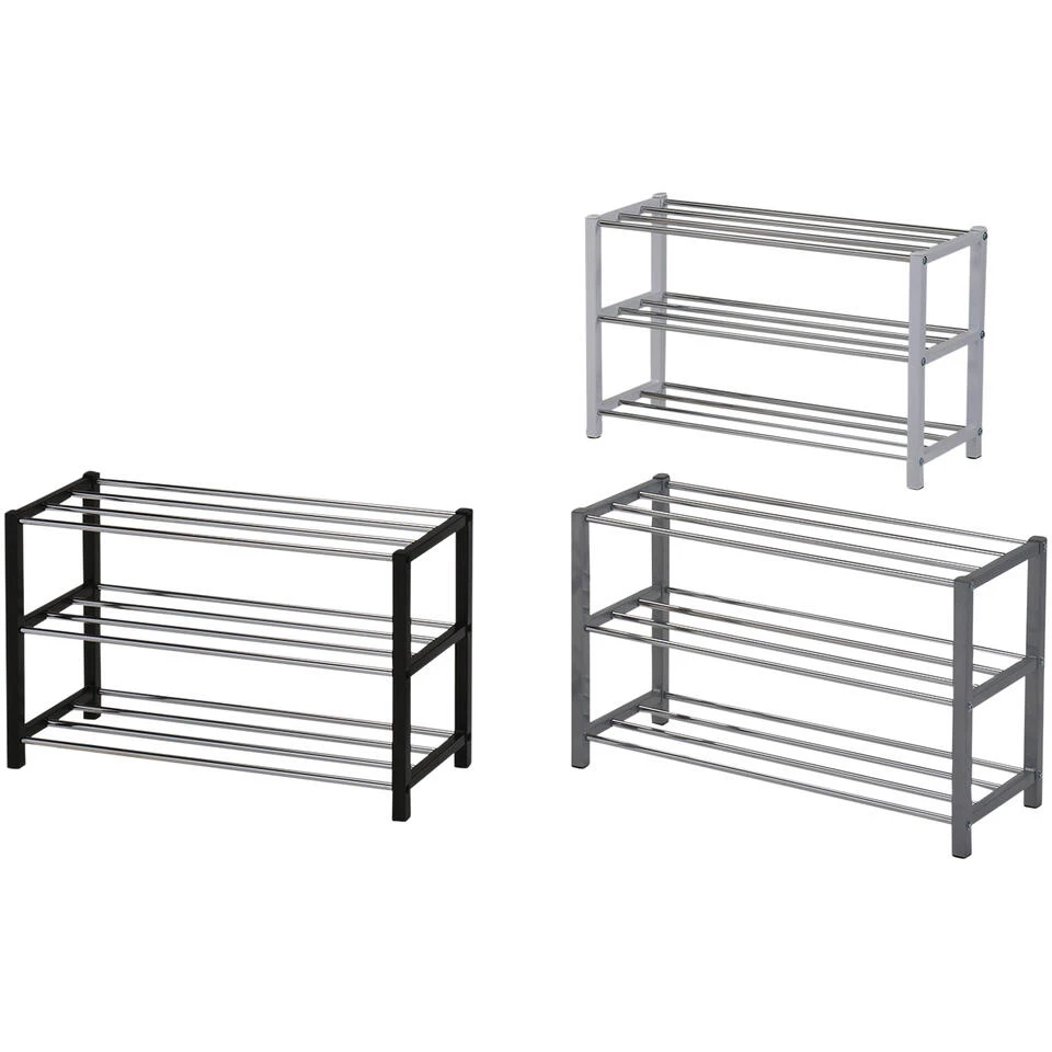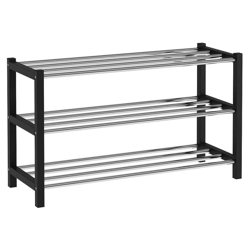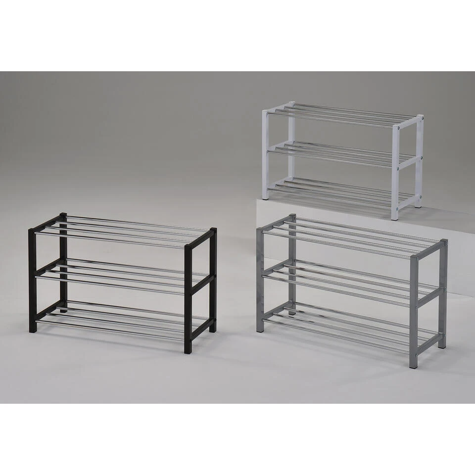 Dit zwarte schoenenrek is gemaakt van metaal en beschikt over 3 etages. Op elke etage kan je 3 tot 4 paar schoenen opbergen. Ideaal om orde te scheppen in de hal, dressing of slaapkamer!