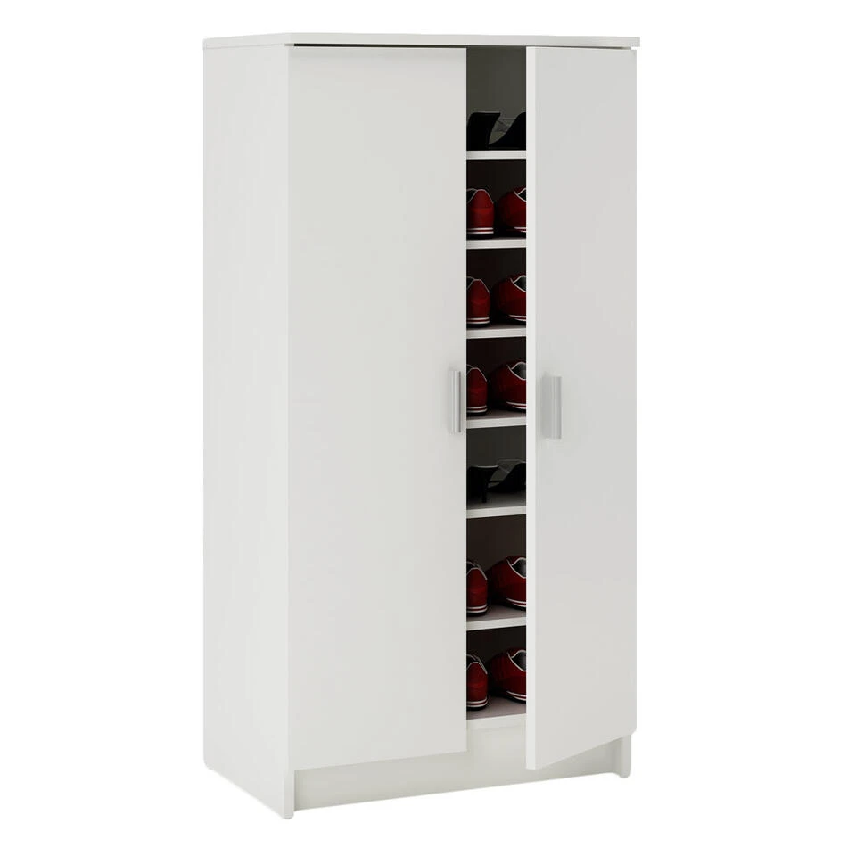 Schoenenkast Cabinet is een ruime schoenenkast maar kan ook als andere opbergmogelijkheid gebruikt worden. De kast heeft 2 deuren, 6 (verwijderbare) legplanken en zilverkleurige grepen. Eenvoudig en praktisch; zo kan je deze kast het best omschrijven. Geen poespas, alles is netjes op te bergen in deze schoenenkast Cabinet. Ook verkrijgbaar in eikenkleur (81004560).