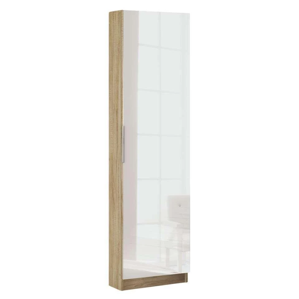 Kast Zapatero is een opbergmeubel voor schoenen, met een spiegeldeur van 173×50 cm groot. Het metalen handvat is inbegrepen. Bij de montage van de deur kan je kiezen voor een linkse of rechtse opening van de deur. De kast bestaat uit 6 opbergvakken waarbij je telkens 2 paar schoenen kan opbergen (12 in totaal). Je kan de schoenen gemakkelijk plaatsen door de metalen buizen met een diameter van 10 mm. De binnenkant van de kast heeft een witte kleur. De kast is verkrijgbaar in verschillende kleuren.