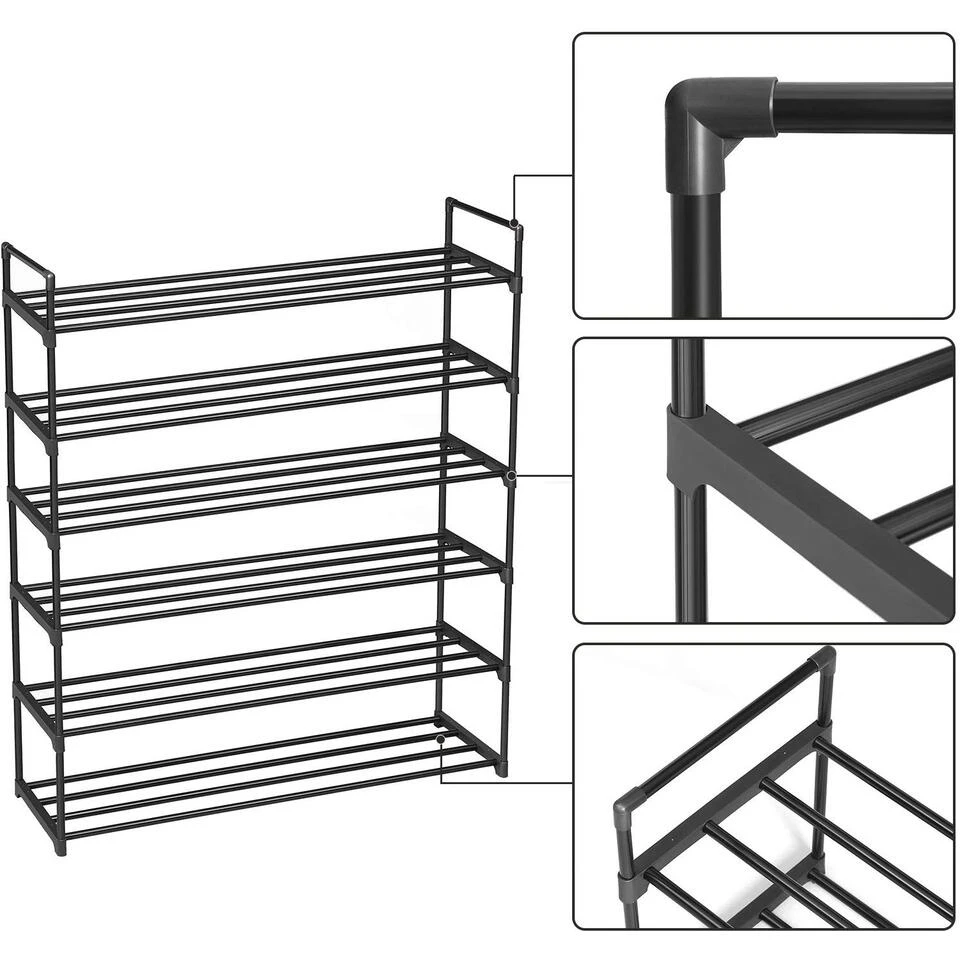 Dit eenvoudig, maar functionele schoenenrek zal zeker en vast een plaatsje vinden in jouw woning! Het rekje is bovendien eenvoudig te monteren en gemakkelijk aan te passen. Als u tijdens de montage een of twee lagen weglaat, is er ook ruimte voor uw laarzen of hoge schoenen. Heb je zoveel schoenen dat één zo’n rekje niet voldoende is? Plaats dan 2 rekjes op elkaar en bekom zo een rek met 12 lagen! Super handig, niet?