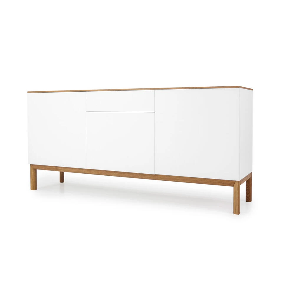 Tenzo dressoir Patch 3 deuren en 1 lade is een kast in moderne stijl. Het dressoir is gemaakt van eikenhout en MDF en het is wit met eikenkleur. Het onderstel en de bovenkant van de kast hebben een eikenkleur, de rest van de kast is wit. Met een totale afmeting van 85x179x47 cm biedt dressoir Patch voldoende opbergruimte voor diverse spullen. Plaats er bijvoorbeeld serviesgoed in of gebruik de kast voor het opbergen van boeken en cd’s. Zet vervolgens wat leuke accessoires, zoals een fotolijstje, een plantje of een beeldje, op het dressoir en maak je interieur helemaal af!