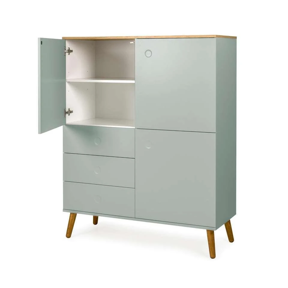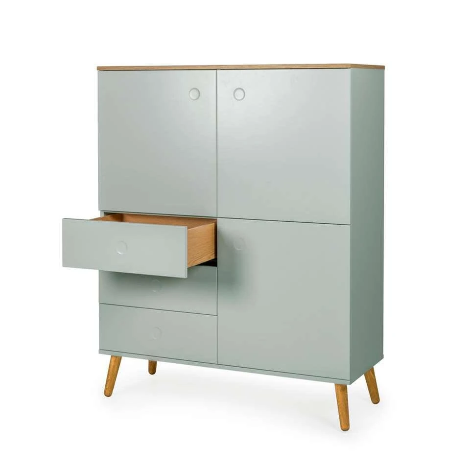 Tenzo wandkast Dot is lichtgroen met eiken en heeft een afmeting van 137x109x43 cm. Deze wandkast biedt veel opbergruimte. Gebruik deze wandkast voor administratie, spelletjes en post in de woonkamer. Je kunt deze kast ook in de eetkamer zetten en er serviesgoed in zetten. Deze kast wordt gekenmerkt door een minimalistische design met Scandinavische look.