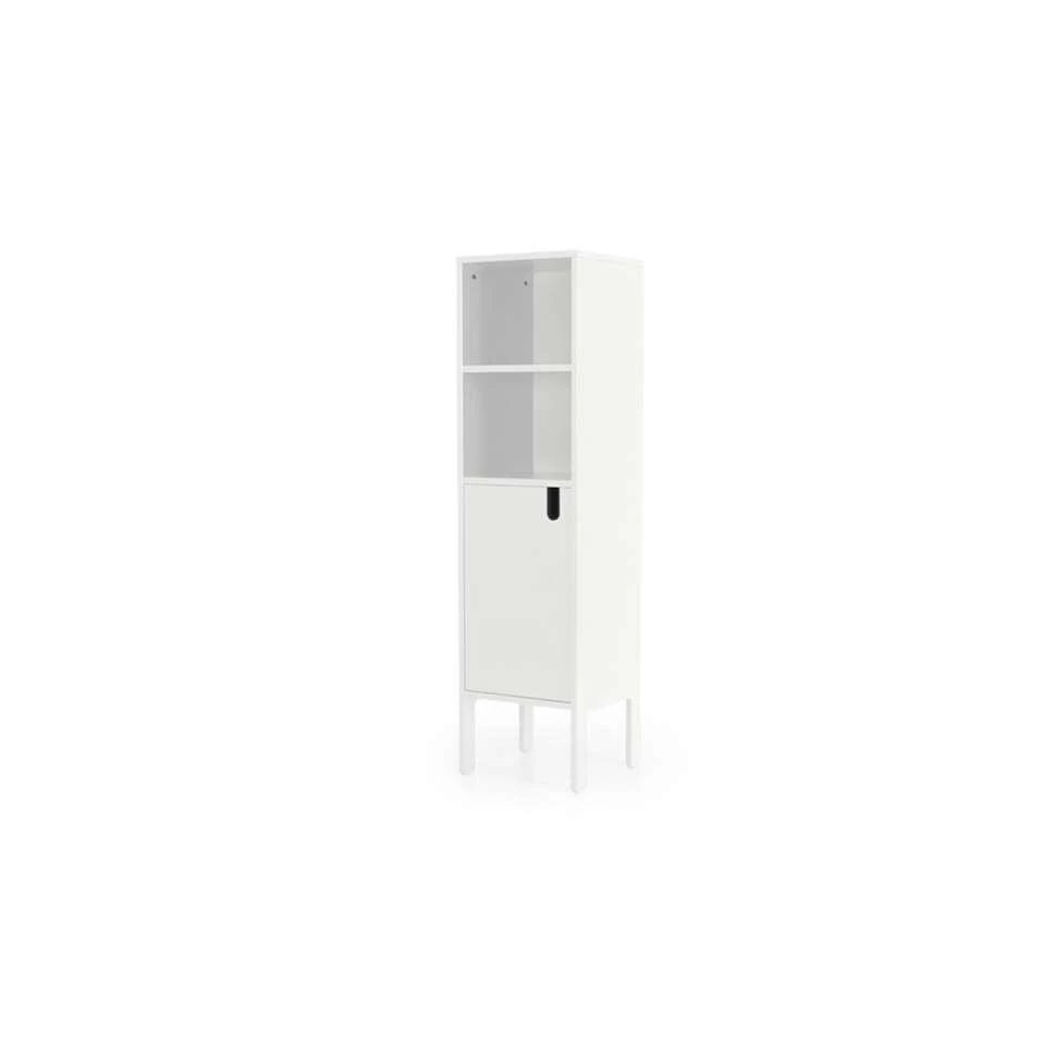 Tenzo wandkast Uno 1-deurs is een smalle, hoge wandkast in moderne stijl. De kast is gemaakt van MDF en hij is wit van kleur. Een neutrale aanvulling op jouw interieur! Wandkast Uno heeft een totale afmeting van 152x40x40 cm. Genoeg opbergruimte dus! Plaats er bijvoorbeeld serviesgoed in of gebruik de kast voor het opbergen van boeken en cd’s. In de open vakken van de kast kun je verschillende leuke woonaccessoires tentoontstellen. Zo is jouw interieur direct gezellig aangekleed.