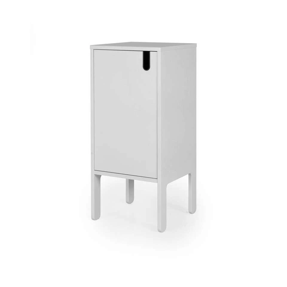 Tenzo wandkast Uno 1-deurs is een klein kastje in moderne stijl. De kast is gemaakt van MDF en hij is wit van kleur. Een neutrale aanvulling op jouw interieur! Wandkast Uno heeft een totale afmeting van 89x40x40 cm. Plaats diverse spulletjes in de kast en zet hem in de woonkamer, of gebruik hem als nachtkastje. Natuurlijk kun je op de kast verschillende leuke woonaccessoires kwijt, zodat jouw interieur direct gezellig aangekleed is!