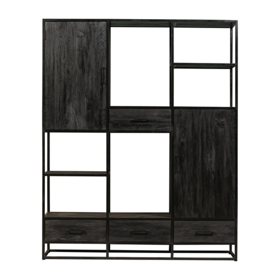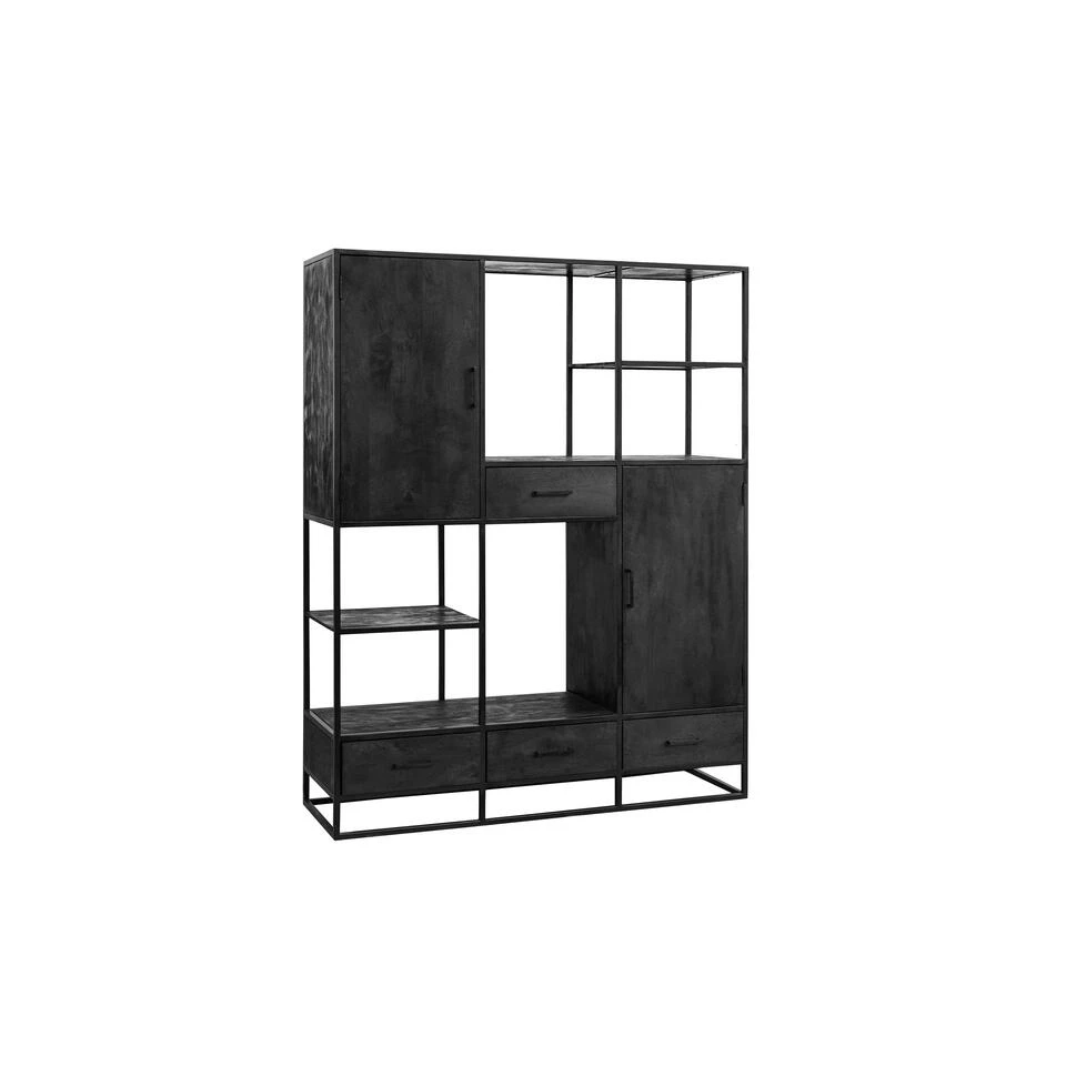 De XXL Vakkenkast Florence is een geweldige verschijning in elke woning. Met zo’n ruim formaat is dat natuurlijk geen verrassing. De samenwerking van zwart mangohout en zwart metaal geeft het grootse meubel een extra beetje klasse.Het speelse design van open vakken, kastjes en lades ziet er niet alleen spectaculair uit, maar zorgt er ook voor dat allerlei verschillende eigendommen in het meubel kunnen worden opgeborgen.