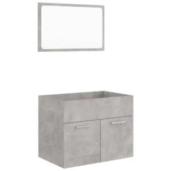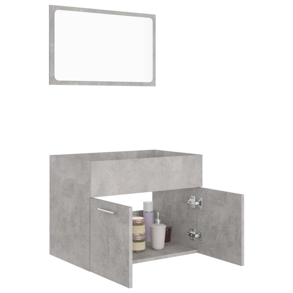 De meubelset, bestaande uit een spiegel en een kast, is gemaakt van duurzaam en stabiel spaanplaat. De chique kast is voorzien van 1 vak en 2 deuren en biedt voldoende opbergruimte om spullen in je badkamer op te bergen. Het blad van de kast is ideaal voor het plaatsen van een wastafel. De spiegel geeft je interieur een prachtige uitstraling. Deze badkamerset is gemakkelijk schoon te maken met een vochtige doek.
