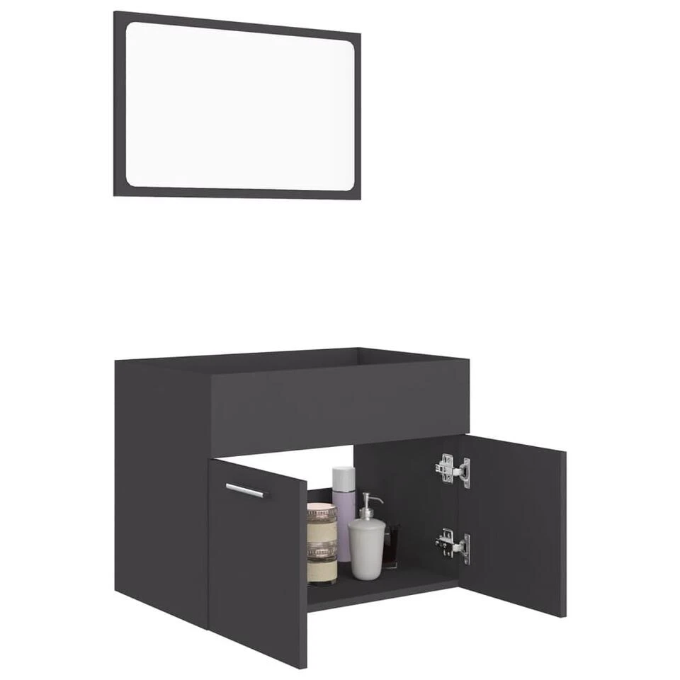 De meubelset, bestaande uit een spiegel en een kast, is gemaakt van duurzaam en stabiel spaanplaat. De chique kast is voorzien van 1 vak en 2 deuren en biedt voldoende opbergruimte om spullen in je badkamer op te bergen. Het blad van de kast is ideaal voor het plaatsen van een wastafel. De spiegel geeft je interieur een prachtige uitstraling. Deze badkamerset is gemakkelijk schoon te maken met een vochtige doek.