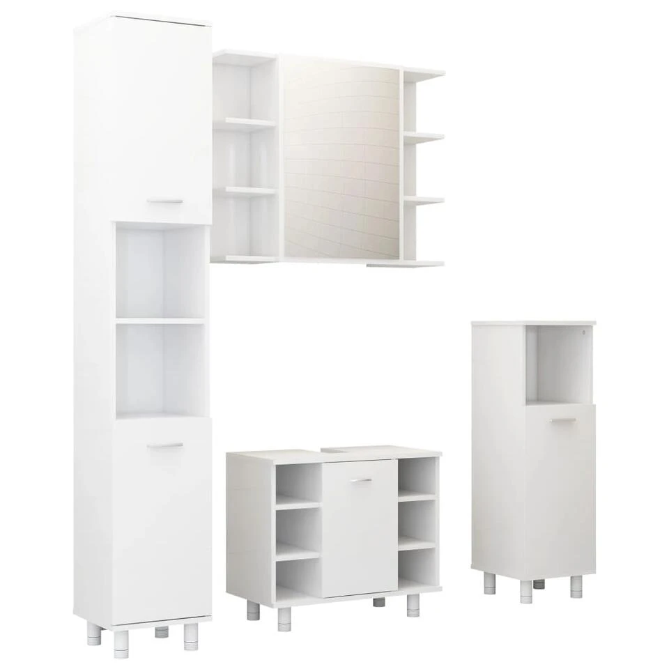 Deze stijlvolle meubelset, bestaande uit 1 hoge kast, 1 medium kast, 1 wastafelkast en 1 spiegelkast, heeft een prachtige, nette uitstraling en creëert extra opbergruimte in je badkamer.