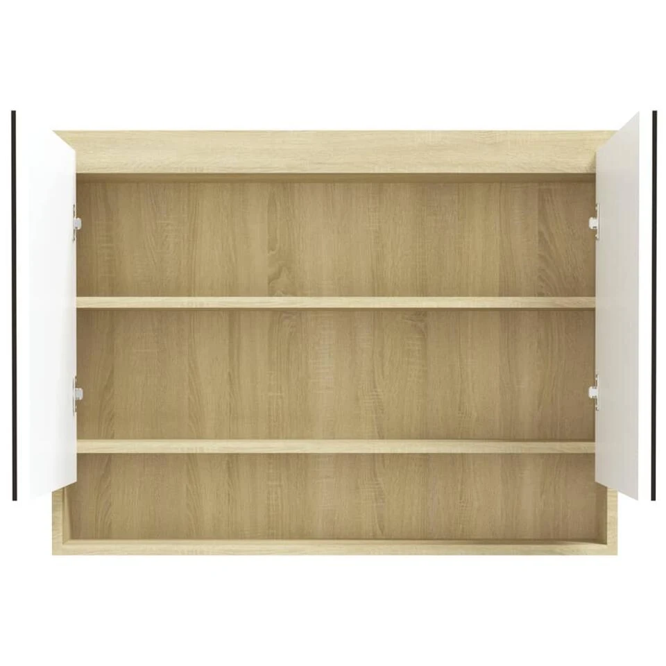 De wandspiegelkast is gemaakt van glas en MDF met melamine-oppervlak, waardoor hij duurzaam en stabiel is. De kast heeft 2 deuren en in totaal 3 vakken, waardoor hij voldoende opbergruimte biedt. Ze zijn ideaal voor het opbergen van je toiletartikelen en badspullen, zoals zeep, shampoo en tandpasta.