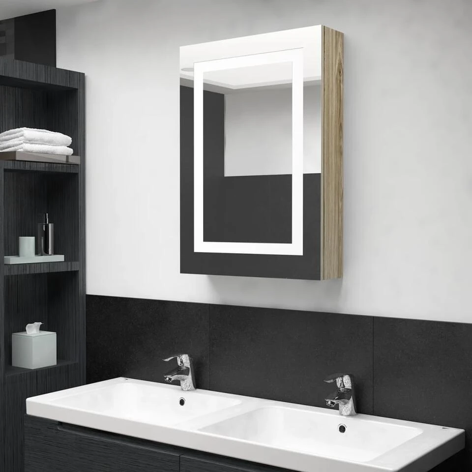 De wandkast is gemaakt van MDF met melamine-afwerking, waardoor hij zeer duurzaam is. Dankzij de energiezuinige LED-lichtstrips is er genoeg licht om jezelf op te maken en je huid te verzorgen. Ze verlichten zowel de ruimte als jou. Het kastje heeft 3 schappen die voldoende ruimte bieden voor al je toiletartikelen en schoonheidsaccessoires. Je kan het licht eenvoudig in-/uitschakelen met de knop aan de onderkant. Het kastje is stijlvol en functioneel, en is een blikvanger in elke ruimte!