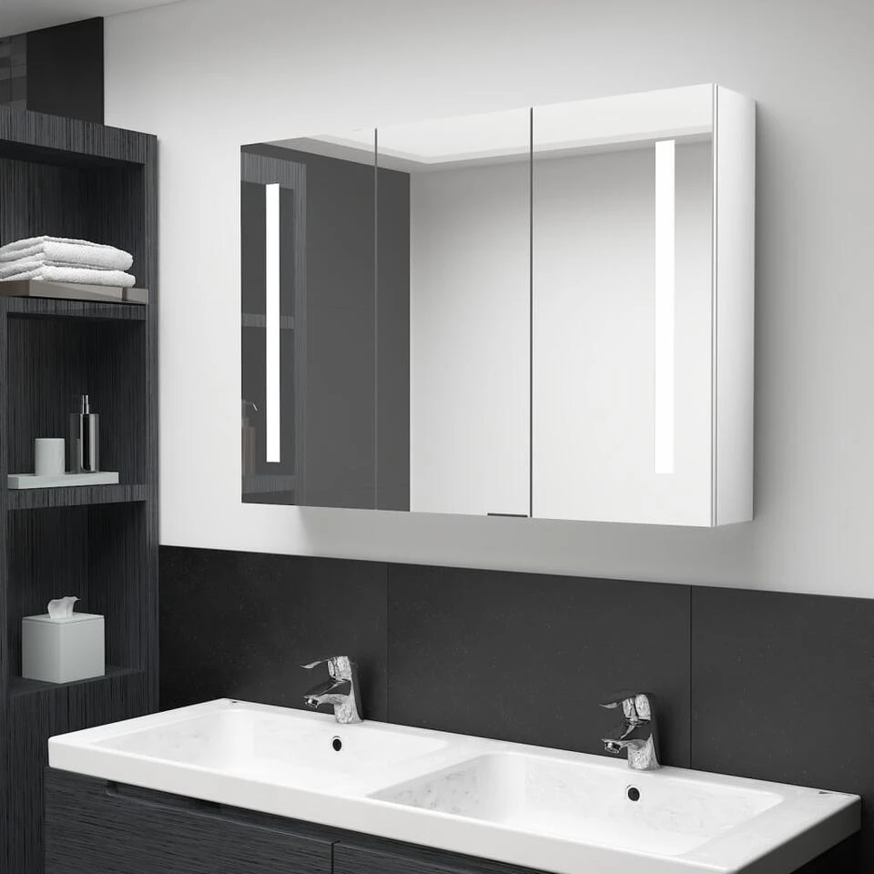 Het kastje is gemaakt van hoogwaardig MDF met melamine-afwerking waardoor hij zeer duurzaam is. Dankzij de energiezuinige LED-lichtstrips is er genoeg licht om jezelf op te maken en je huid te verzorgen. Ze verlichten zowel de ruimte als jou. Het kastje heeft 3 schappen die voldoende ruimte bieden voor al je toiletartikelen en schoonheidsaccessoires. Je kan het licht eenvoudig in-/uitschakelen met de knop aan de onderkant. Het kastje is trendy en functioneel, en is een blikvanger in elke ruimte!