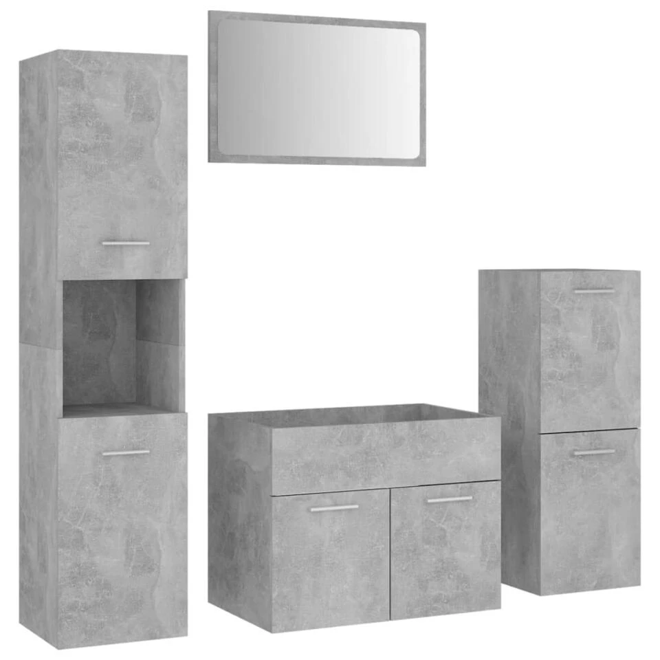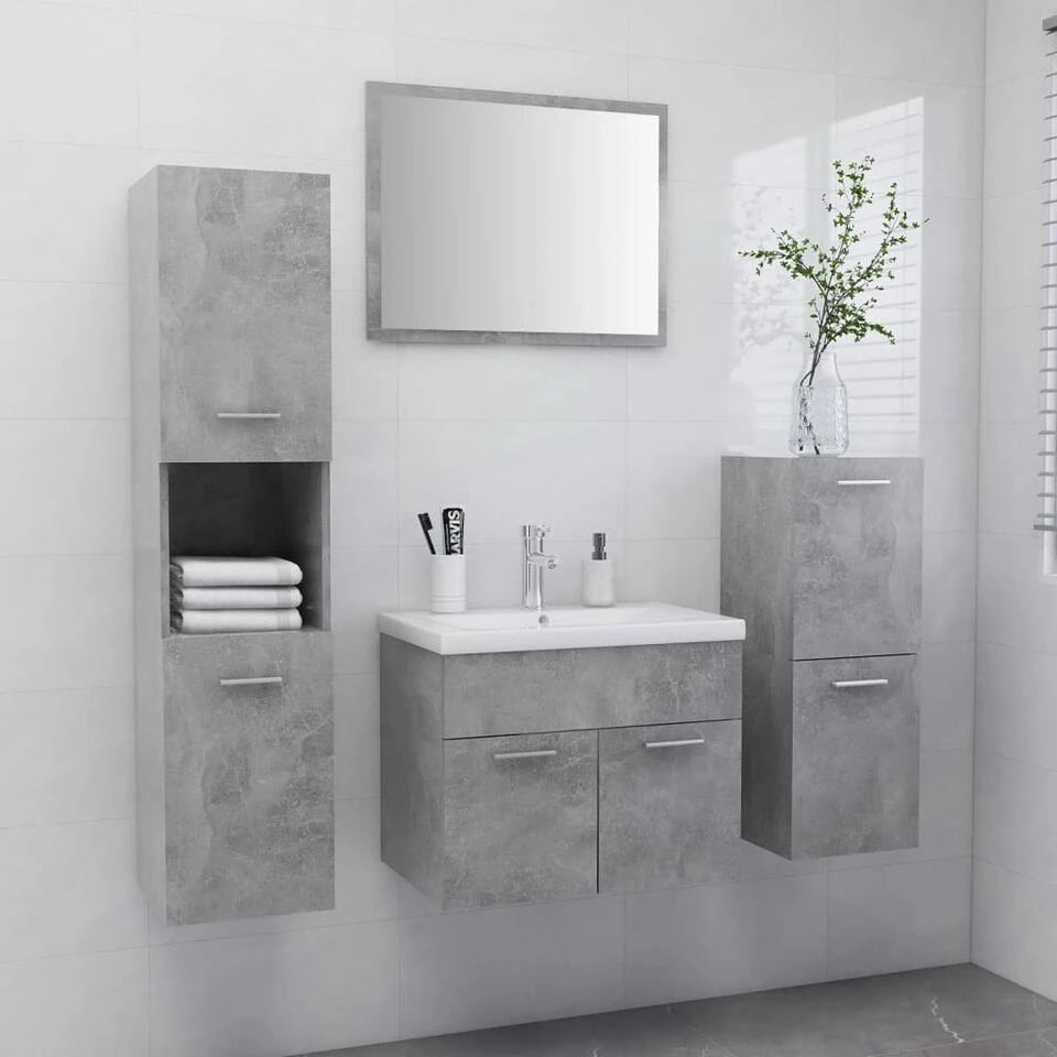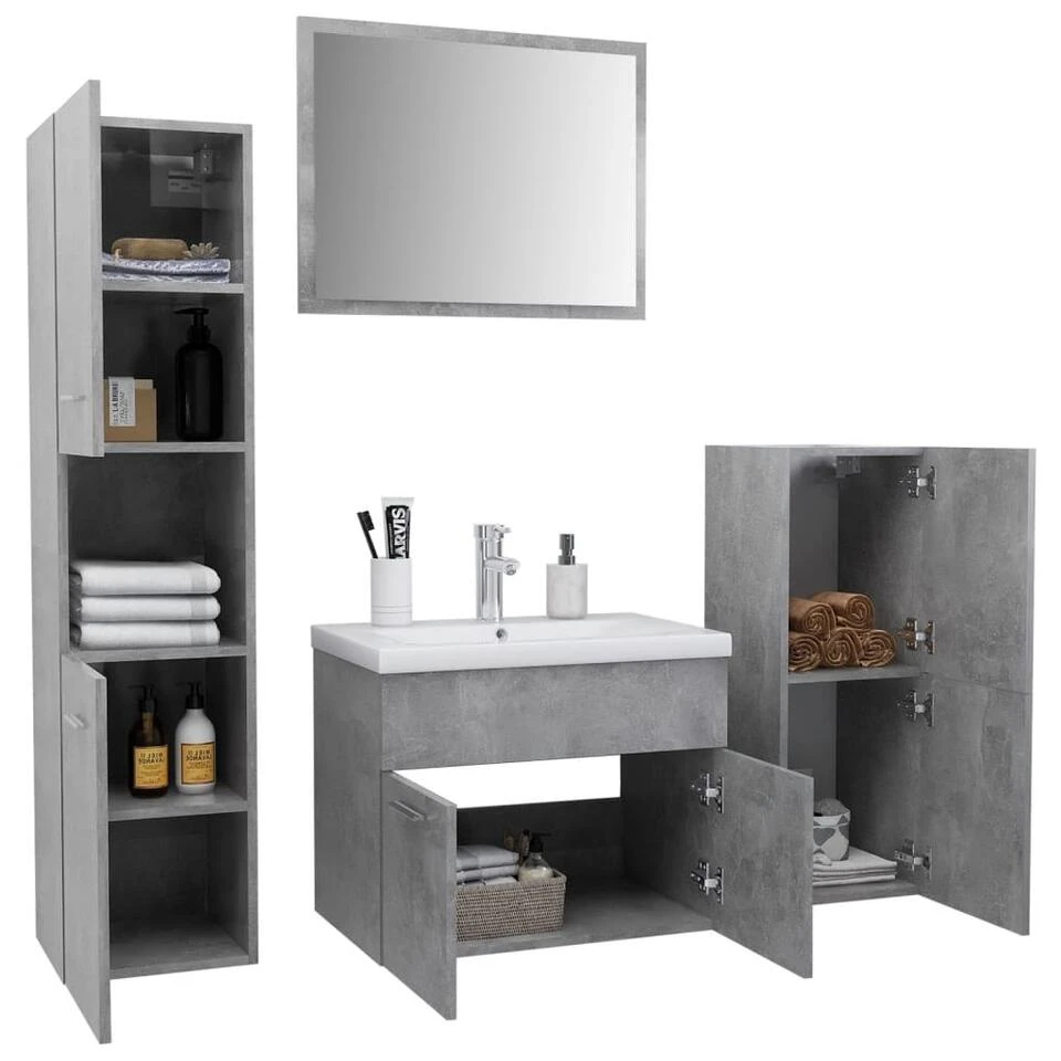De meubelset bestaat uit een wastafelkast, een lage kast, een hoge kast en een spiegel. De chique wastafelkast heeft 1 vak en het bovenblad daarvan is ideaal voor het plaatsen van de wastafel. De hoge kast heeft in totaal 5 vakken en 2 deuren, terwijl de lage kast 2 vakken heeft. Deze 2 kasten bieden verschillende opbergmogelijkheden en extra ruimte om spullen in je badkamer op te bergen. De spiegel geeft je interieur een prachtige uitstraling. Deze badkamerset is gemakkelijk schoon te maken met een vochtige doek.
