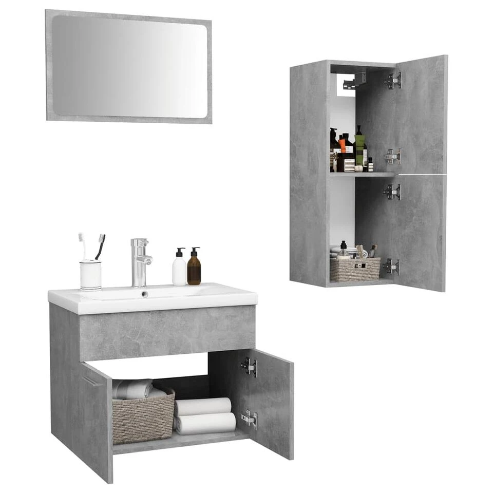 De meubelset bestaat uit een wastafelkast, een lage kast en een spiegel. De chique wastafelkast heeft 1 vak en het bovenblad daarvan is ideaal voor het plaatsen van de wastafel. De lage kast is voorzien van 2 vakken en biedt voldoende ruimte om spullen in je badkamer op te bergen. De spiegel geeft je interieur een prachtige uitstraling. Deze badkamerset is gemakkelijk schoon te maken met een vochtige doek.