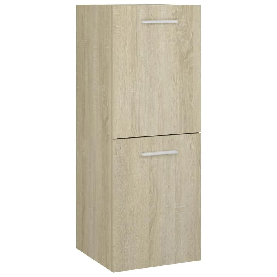 De meubelset bestaat uit een wastafelkast, een lage kast, een hoge kast en een spiegel. De chique wastafelkast heeft 1 vak en het bovenblad daarvan is ideaal voor het plaatsen van de wastafel. De hoge kast heeft in totaal 5 vakken en 2 deuren, terwijl de lage kast 2 vakken heeft. Deze 2 kasten bieden verschillende opbergmogelijkheden en extra ruimte om spullen in je badkamer op te bergen. De spiegel geeft je interieur een prachtige uitstraling. Deze badkamerset is gemakkelijk schoon te maken met een vochtige doek.