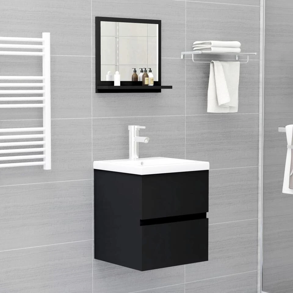 De wandspiegel is gemaakt van spaanplaat en acryl, waardoor hij duurzaam en stabiel is. Hij heeft 1 klein schap dat voldoende ruimte biedt om toiletartikelen, zoals zeep, shampoo en tandpasta, op te bergen. Bovendien is de spiegel gemakkelijk schoon te maken met een vochtige doek.