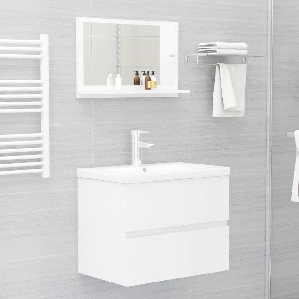 De wandspiegel is gemaakt van spaanplaat en acryl, waardoor hij duurzaam en stabiel is. Hij heeft 1 klein schap dat voldoende ruimte biedt om toiletartikelen, zoals zeep, shampoo en tandpasta, op te bergen. Bovendien is de spiegel gemakkelijk schoon te maken met een vochtige doek.