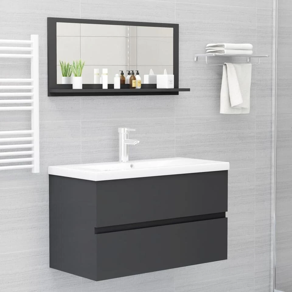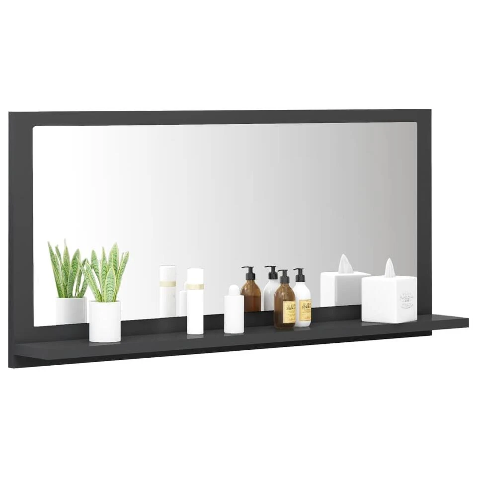 De wandspiegel is gemaakt van spaanplaat en acryl, waardoor hij duurzaam en stabiel is. Hij heeft 1 klein schap dat voldoende ruimte biedt om toiletartikelen, zoals zeep, shampoo en tandpasta, op te bergen. Bovendien is de spiegel gemakkelijk schoon te maken met een vochtige doek.