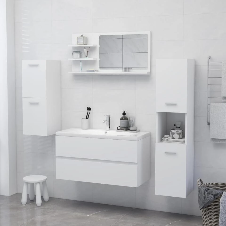 De wandspiegel is gemaakt van spaanplaat en acryl, waardoor hij duurzaam en stabiel is. Hij heeft 3 schappen die voldoende ruimte bieden om toiletartikelen, zoals zeep, shampoo en tandpasta, op te bergen. Bovendien is de spiegel gemakkelijk schoon te maken met een vochtige doek.