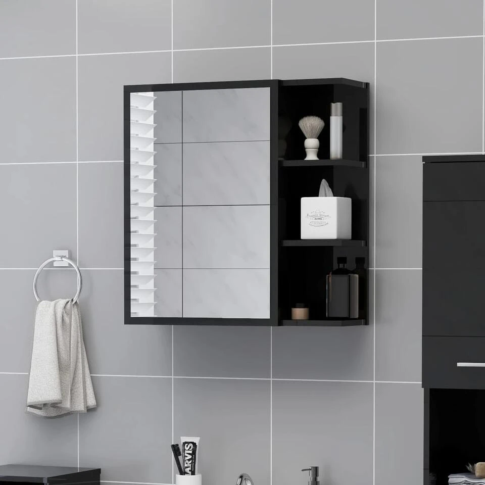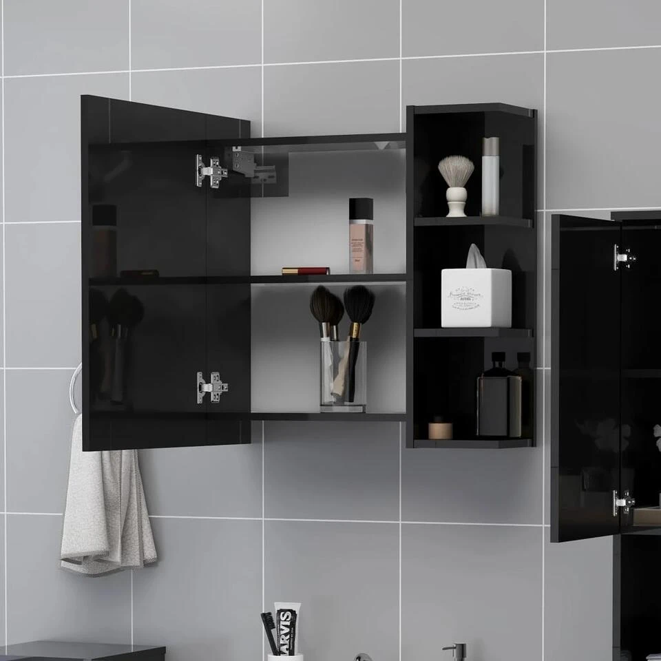 De wandspiegelkast is gemaakt van spaanplaat en acryl, waardoor hij duurzaam en stabiel is. De kast heeft 1 deur en in totaal 5 vakken, waarvan 3 aan de buitenkant en 2 aan de binnenkant. Ze zijn ideaal voor het opbergen van je toiletartikelen en badspullen, zoals zeep, shampoo en tandpasta.