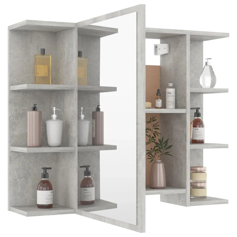 De wandspiegelkast is gemaakt van spaanplaat en acryl, waardoor hij duurzaam en stabiel is. De kast heeft 1 deur en in totaal 8 vakken, waarvan 6 aan de buitenkant en 2 aan de binnenkant. Ze zijn ideaal voor het opbergen van je toiletartikelen en badspullen, zoals zeep, shampoo en tandpasta.