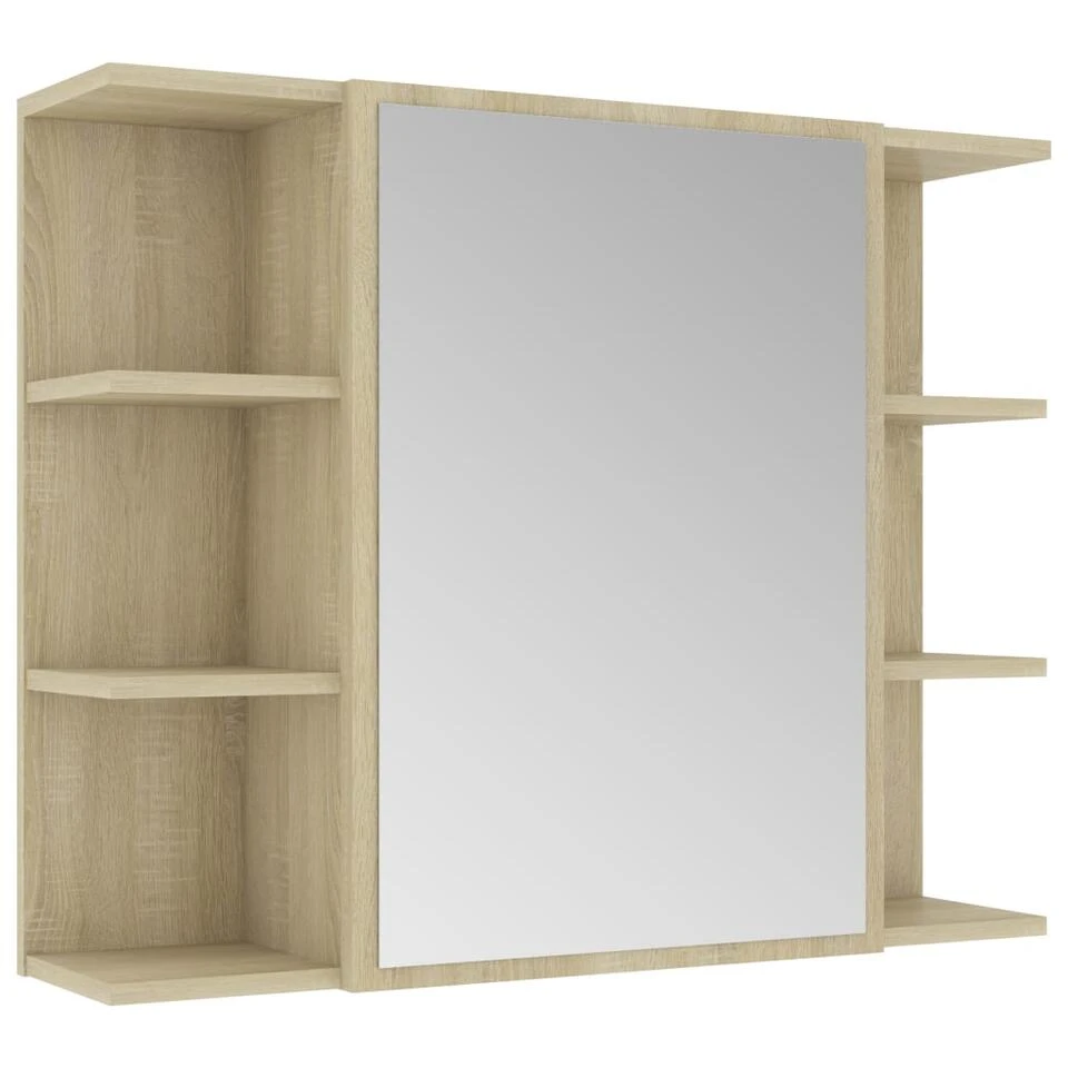 De wandspiegelkast is gemaakt van spaanplaat en acryl, waardoor hij duurzaam en stabiel is. De kast heeft 1 deur en in totaal 8 vakken, waarvan 6 aan de buitenkant en 2 aan de binnenkant. Ze zijn ideaal voor het opbergen van je toiletartikelen en badspullen, zoals zeep, shampoo en tandpasta.