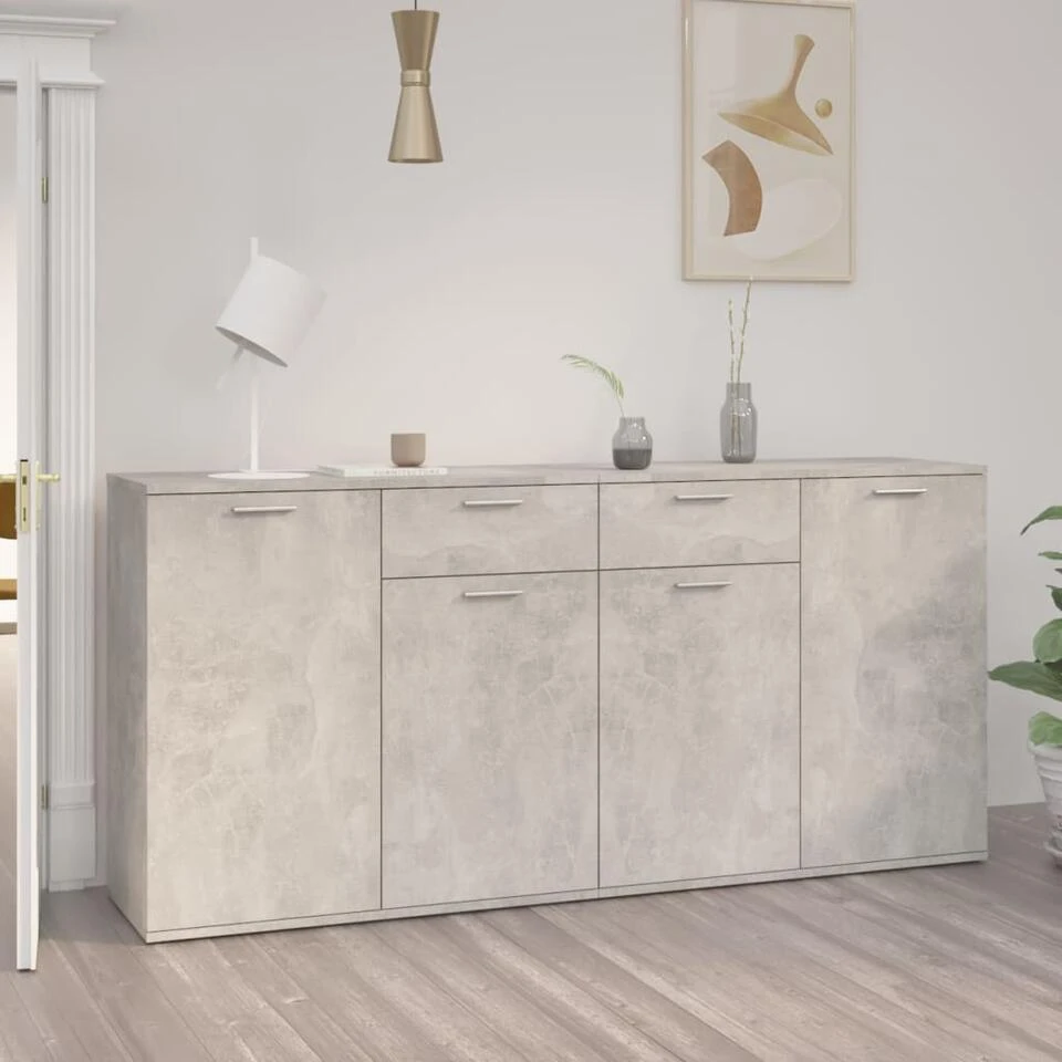 Het dressoir heeft in totaal 4 deuren en 2 lades en biedt voldoende opbergruimte voor boeken, multimedia-apparaten en andere spullen. Het stevige blad is ideaal voor het plaatsen van decoratieve objecten, fotolijsten en potplanten. Daarnaast is de kast eenvoudig te reinigen met een vochtige doek.