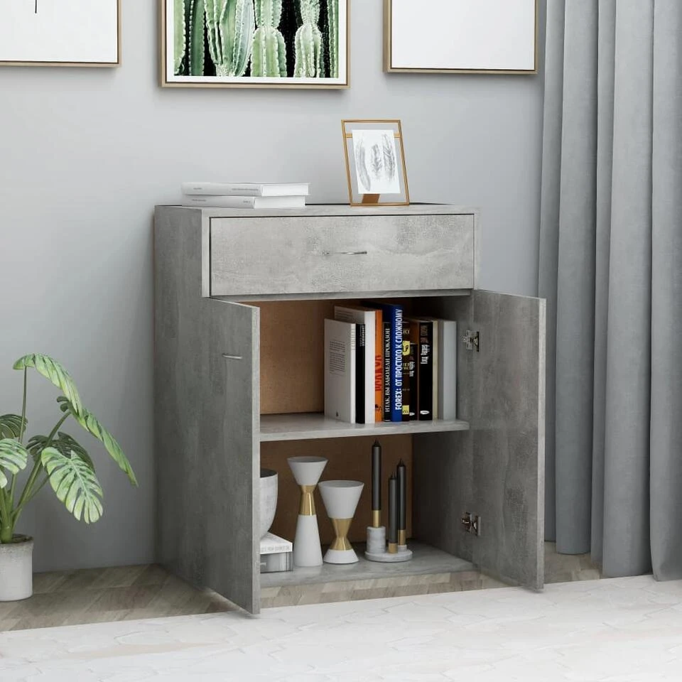 Dit dressoir heeft 2 deuren en 1 lade en biedt voldoende opbergruimte voor boeken, multimedia-apparaten en andere spullen. Het stevige blad is ideaal voor het plaatsen van decoratieve objecten, fotolijsten en potplanten. Het kan ook worden gebruikt als een wandmeubel, bijzetkast, enz. Dankzij het hoogwaardige spaanplaat is dit dressoir zeer duurzaam.