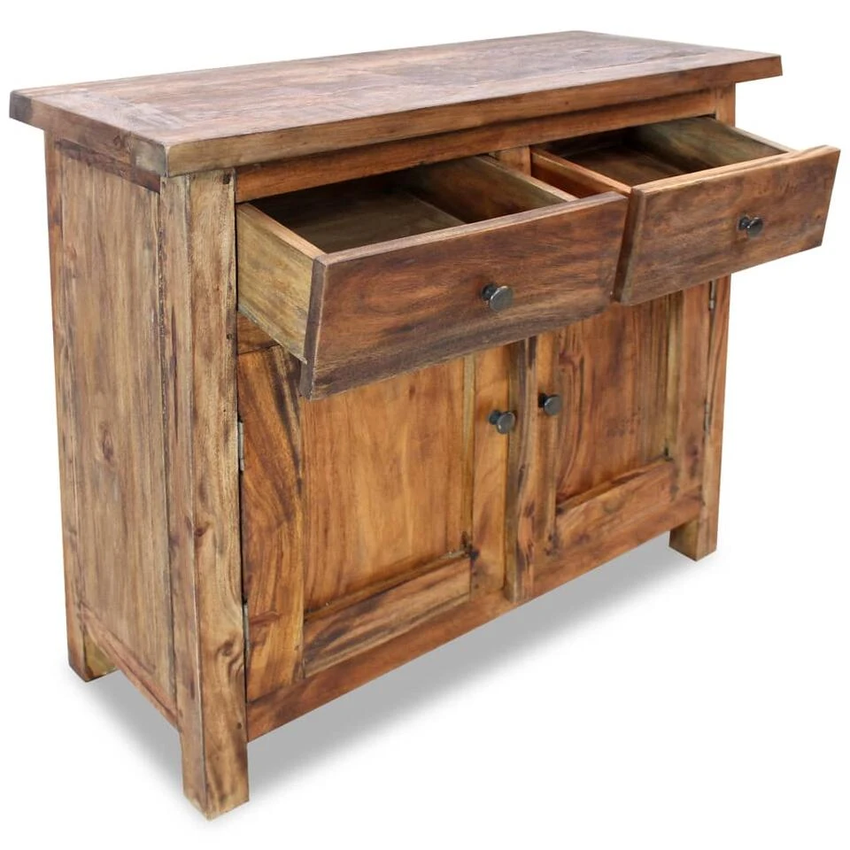 Dit houten dressoir is een perfecte keuze als je een vleugje rustieke charme aan je interieur wilt toevoegen. Deze opbergkast is gemaakt van massief gerecycled hout dat de eigenschappen heeft van verschillende houtsoorten, zoals mahoniehout, teakhout, mangohout en acaciahout.