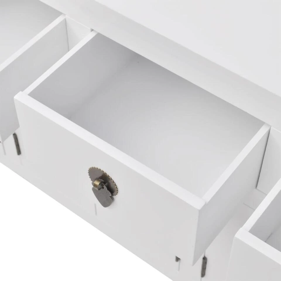 Dit unieke dressoir past ook perfect in je slaapkamer, studeerkamer of hal. Het dressoir heeft 4 lades en 3 kastjes voor het opbergen van diverse soorten spullen en prullaria.