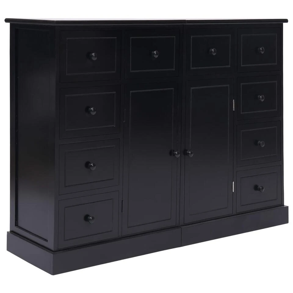 Deze set is gemaakt van hoogwaardig paulowniahout, populierenhout en MDF-plaat waardoor hij buitengewoon stevig en duurzaam is. Hij bestaat uit 10 lades en 2 kasten om voldoende opbergruimte te bieden aan verschillende spullen, zoals sleutels, notitieblokken, boeken, tijdschriften en andere snuisterijen en benodigdheden. Bovendien is de grote bovenkant ideaal voor het plaatsen van een multimedia-apparaat of voor het plaatsen van decoratieve objecten. Je kunt de 2 dressoirs samenvoegen tot een groot geheel of scheiden en als twee individuele kasten gebruiken.
