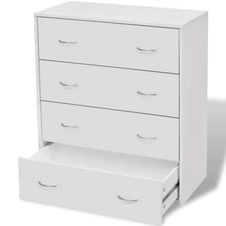 Het dressoir heeft 4 soepel lopende lades met handvatten, ze bieden voldoende ruimte voor je spullen, en helpen de kamer opgeruimd te houden. Je kunt ook dingen als foto’s, boeken en potplanten bovenop de kast zetten. De kast is gemaakt van hoogwaardig bewerkt hout en MDF, waardoor hij gemakkelijk te reinigen en duurzaam is.