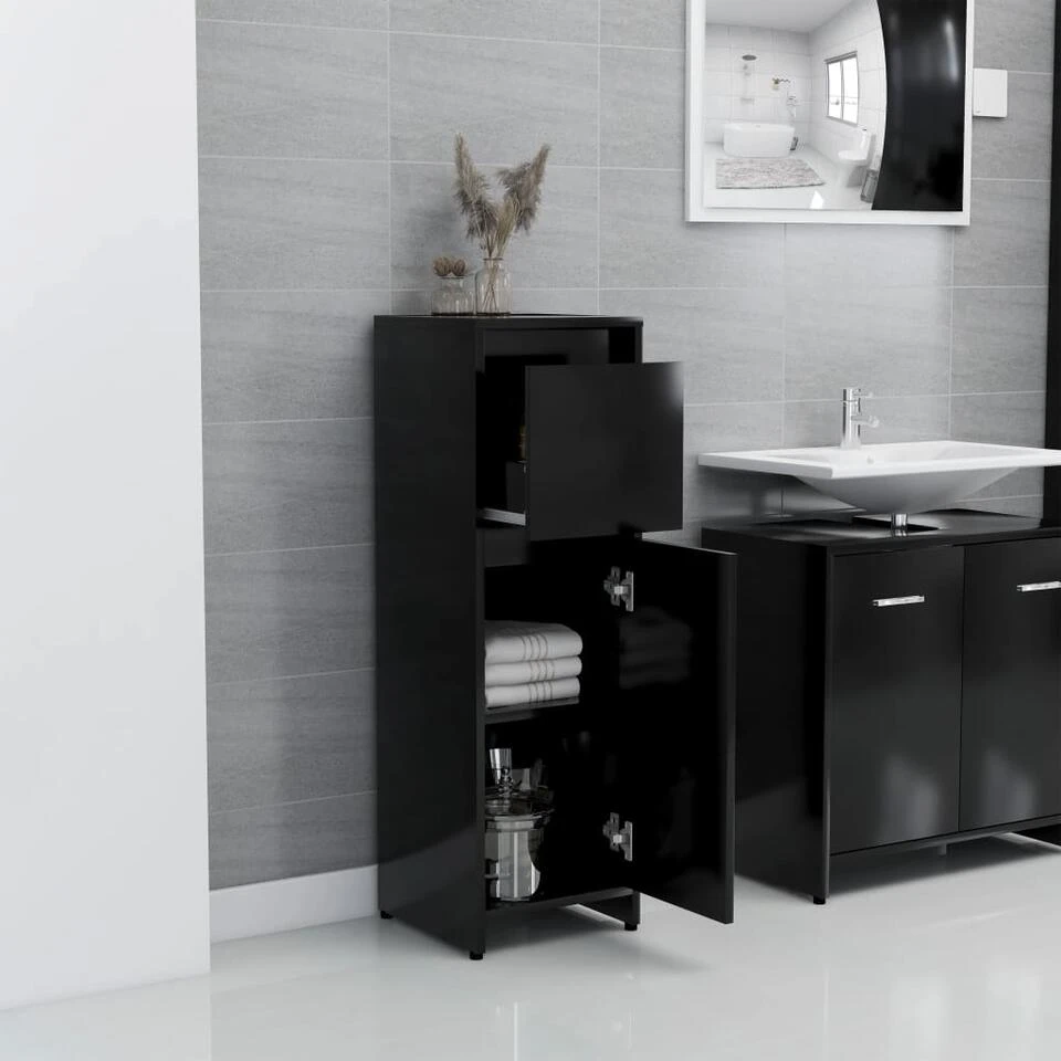 Deze chique kast is gemaakt van spaanplaat, waardoor hij stevig en stabiel is. De kast heeft 2 vakken, 1 lade en 1 deur, en biedt verschillende opbergmogelijkheden en extra ruimte om spullen in je badkamer op te bergen. De kast is gemakkelijk schoon te maken met een vochtige doek.