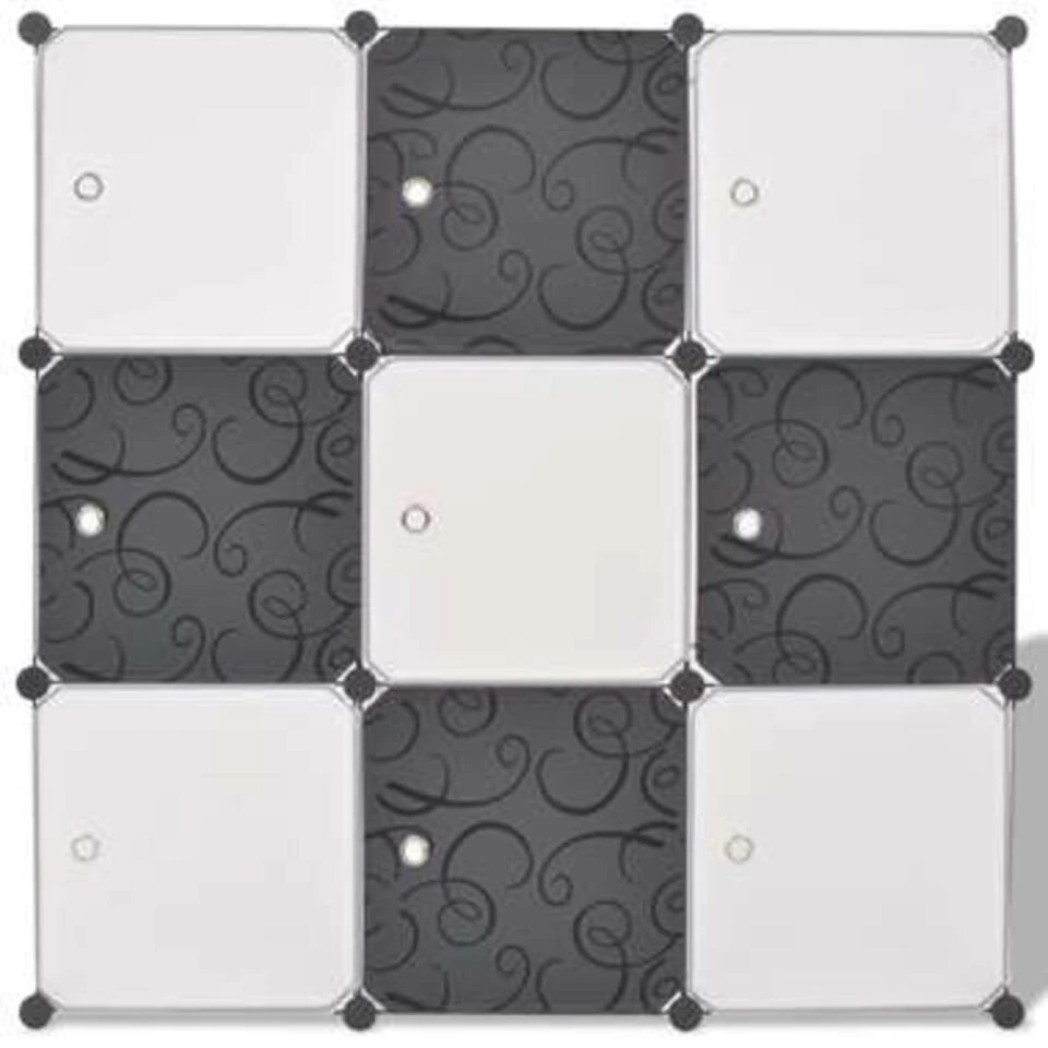 Deze stijlvolle, multifunctionele organizer, met 9 kubusvormige compartimenten, gerangschikt in een gelaagd patroon, is zowel decoratief als praktisch voor in uw huis. Hij kan worden gebruikt als schoenenrek, boekenkast, dressoir, enz.