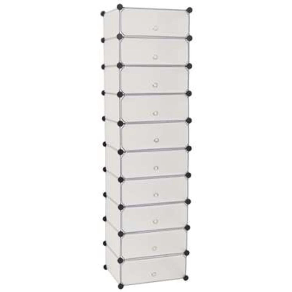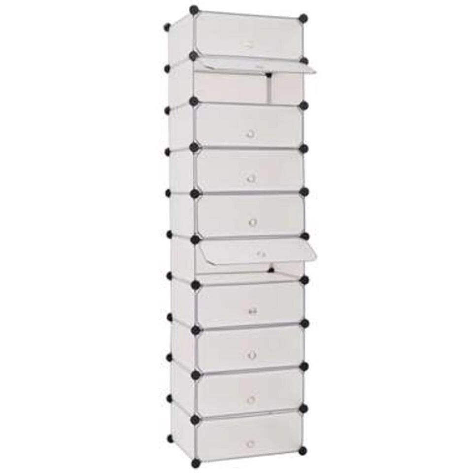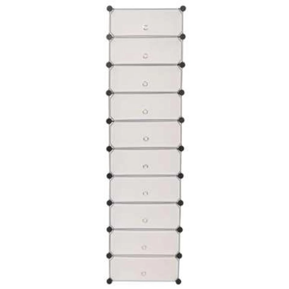 Deze stijlvolle en functionele schoenenkast heeft 10 vakken, ieder met een deurtje, en houdt al je schoenen schoon en georganiseerd.