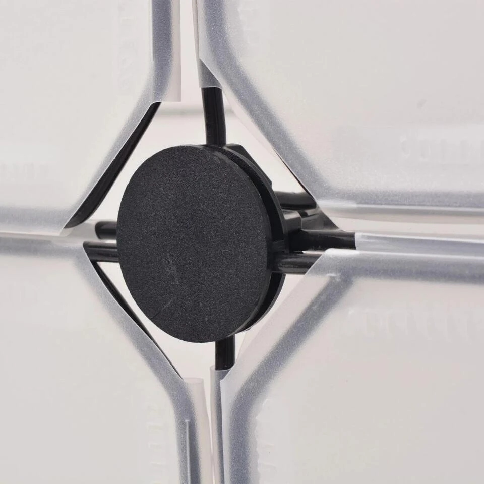 De schoenenkast is gemaakt van hoogwaardige kunststof panelen met stalen frames om ze stevig en duurzaam te maken. Dankzij het kunststof materiaal is het schoenenrek makkelijk schoon te maken. De kast kan snel en eenvoudig worden opgebouwd met de meegeleverde kunststof hoekstukken. De kast is lichtgewicht en kan dus gemakkelijk worden verplaatst.
