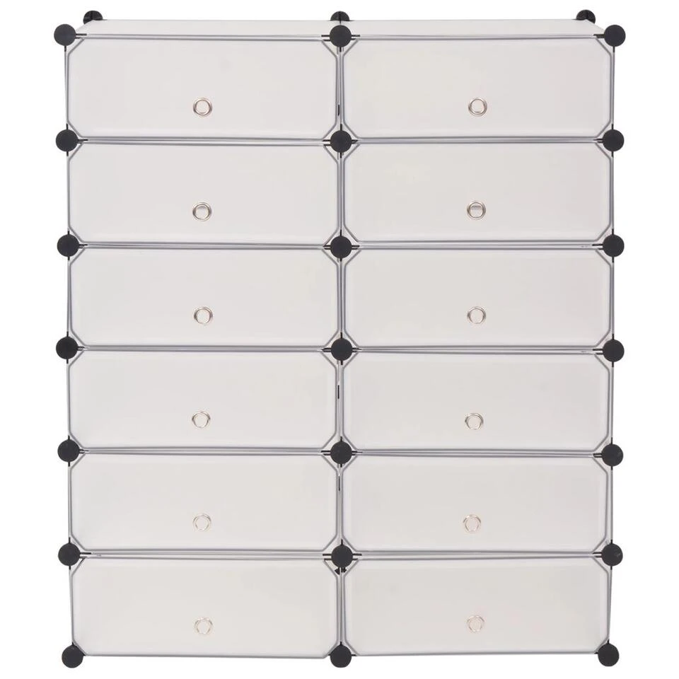 Deze stijlvolle en functionele schoenenkast heeft 12 vakken, ieder met een deurtje, en houdt al je schoenen schoon en georganiseerd.