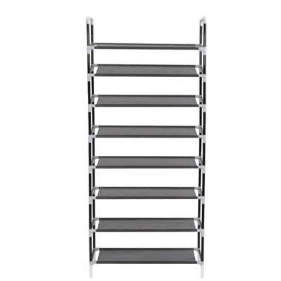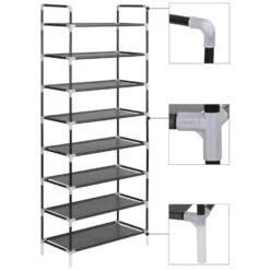 Het heeft een buisvormig, metalen frame dat lichtgewicht en toch stevig is, waardoor het schoenenrek gemakkelijk te verplaatsen en vrij duurzaam is. Het heeft 8 royale schappen die gemaakt zijn van milieuvriendelijk, ongeweven stof en voldoende ruimte hebben om je schoenen geordend en opgeborgen te houden.