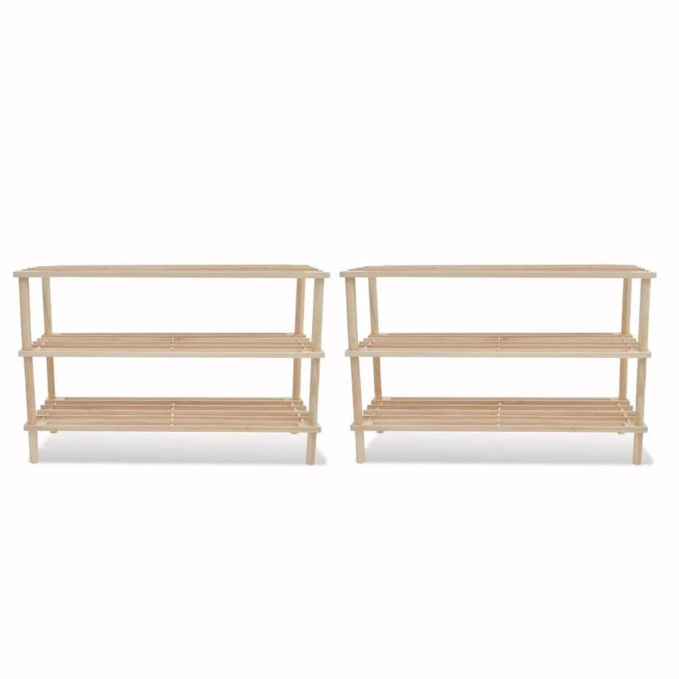 Dit 3-laags houten schoenenrek houdt je schoenen opgeruimd en goed georganiseerd. Het rek is perfect om in de gang te plaatsen of op een andere plek waar je je schoenen wilt bewaren.Â
