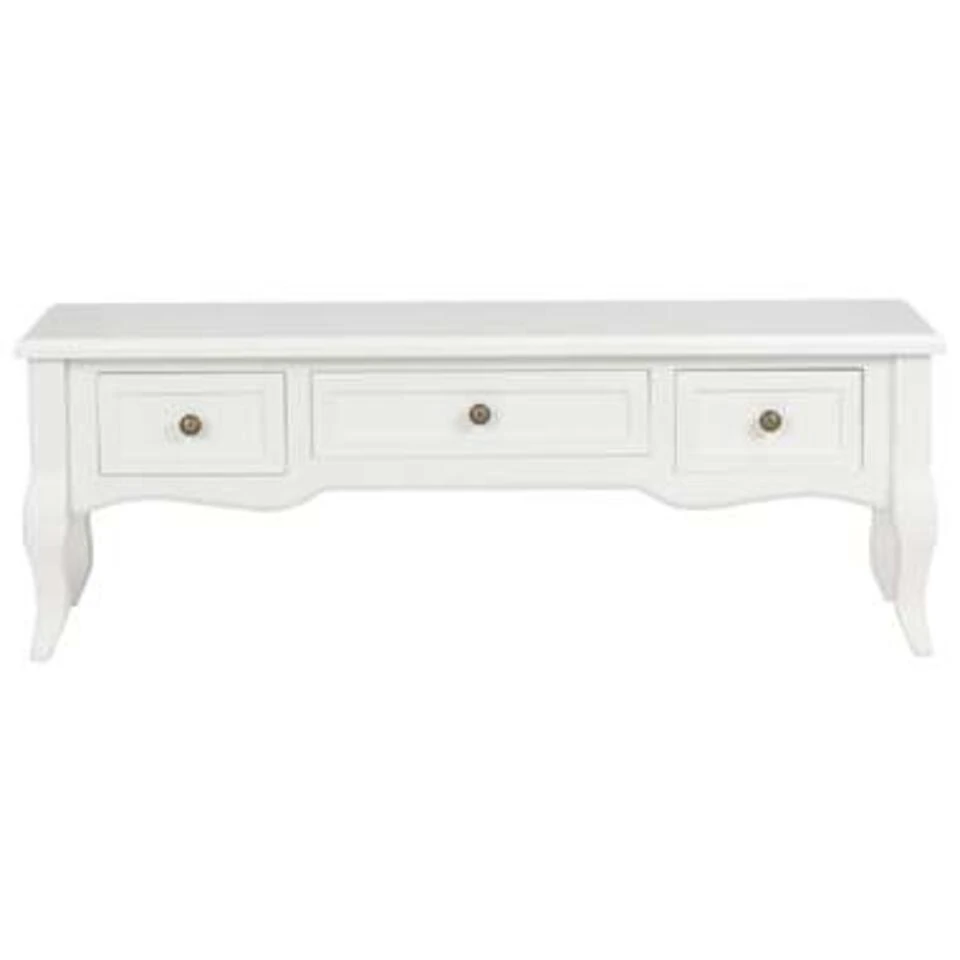Voeg een vleugje elegantie toe aan je woonkamer met ons klassieke tv-meubel! Deze standaard in Franse stijl is uitgerust met 3 lades voor voldoende opbergruimte. Hij zal zowel een praktische als een decoratieve aanvulling zijn op je woonkamer of slaapkamer.