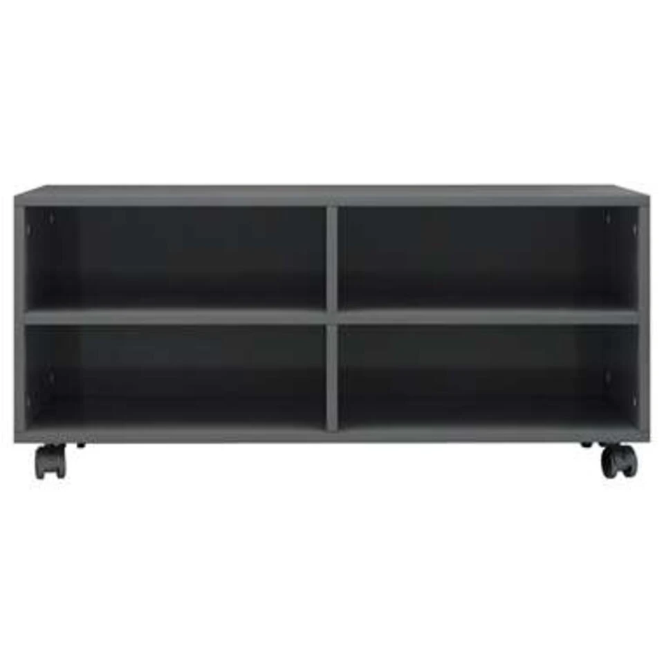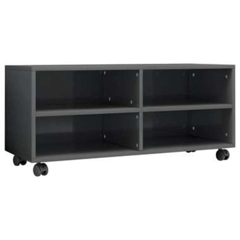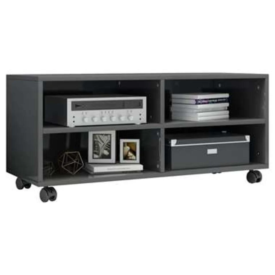 De televisiekast is gemaakt van bewerkt hout waardoor hij stevig en duurzaam is. Deze kast is ontworpen met 4 open vakken en biedt voldoende ruimte om tijdschriften, boeken, dvd-spelers, ontvangers, mediadragers en multimedia-apparaten overzichtelijk en binnen handbereik op te bergen. Bovendien kan hij gemakkelijk verplaatst worden dankzij de 4 soepel rollende wielen en stevig op zijn plaats blijven dankzij de 2 vergrendelbare wielen.