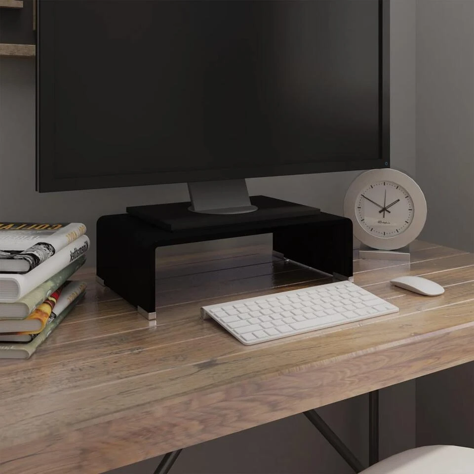 Dit glazen meubel kan worden gebruikt als TV-meubel of verhoger voor uw monitor, televisie, laptop en andere multimedia apparaten. Dankzij de verhoging heeft u een beter zicht op uw scherm terwijl u comfortabel zit. Dit helpt u de spanning op uw nek en rug te verminderen. De ruimte onder de verhoging kan worden gebruikt voor uw DVD-speler, spelcomputer, ontvangers en media-apparatuur.