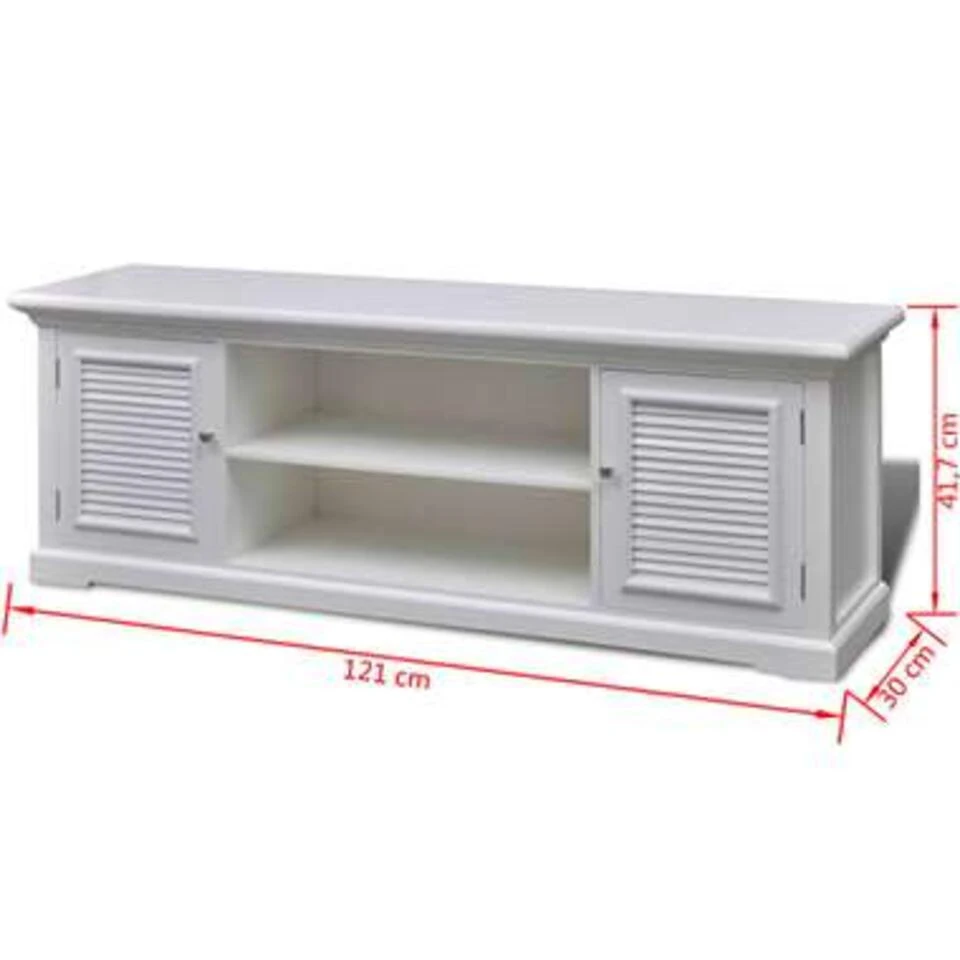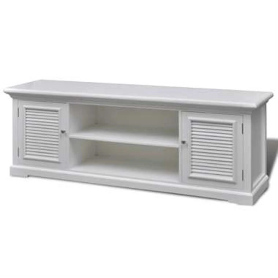 Het tv-standaard is gemaakt van stevig MDF en grenenhout en is bestand tegen dagelijkse slijtage. De witte verfafwerking maakt het gemakkelijk schoon te maken met een vochtige doek.
