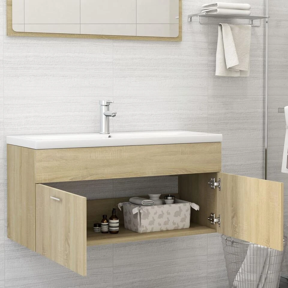 Deze kast is gemaakt van spaanplaat, waardoor hij stevig en stabiel is. De opbergkast heeft 1 vak en 2 deuren en biedt voldoende ruimte om spullen in je badkamer op te bergen. Het blad is ideaal voor het plaatsen van een wastafel. De kast is gemakkelijk schoon te maken met een vochtige doek.